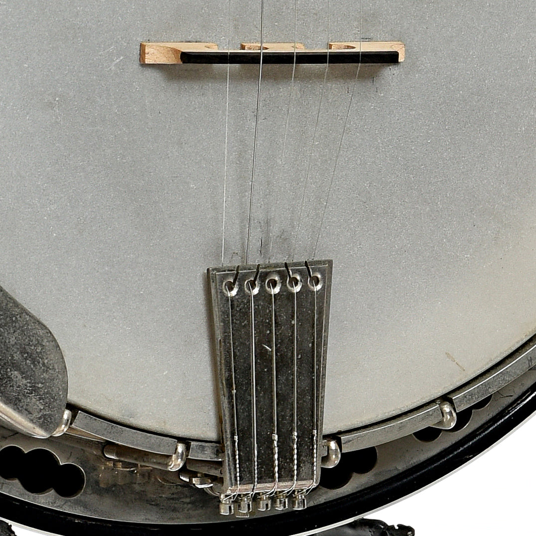 This Deering Deluxe has strong tone and great playability! Features include an ebony fingerboard on mahogany neck and white-bound resonator, and a 3-ply maple rim. Equipped with a no-hole flathead tone ring and Five Star Planetary tuners. Kerschner tailpiece and two Keith D-tuners installed. Original hardshell case. Made in USA.