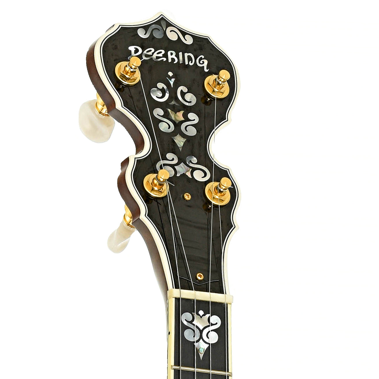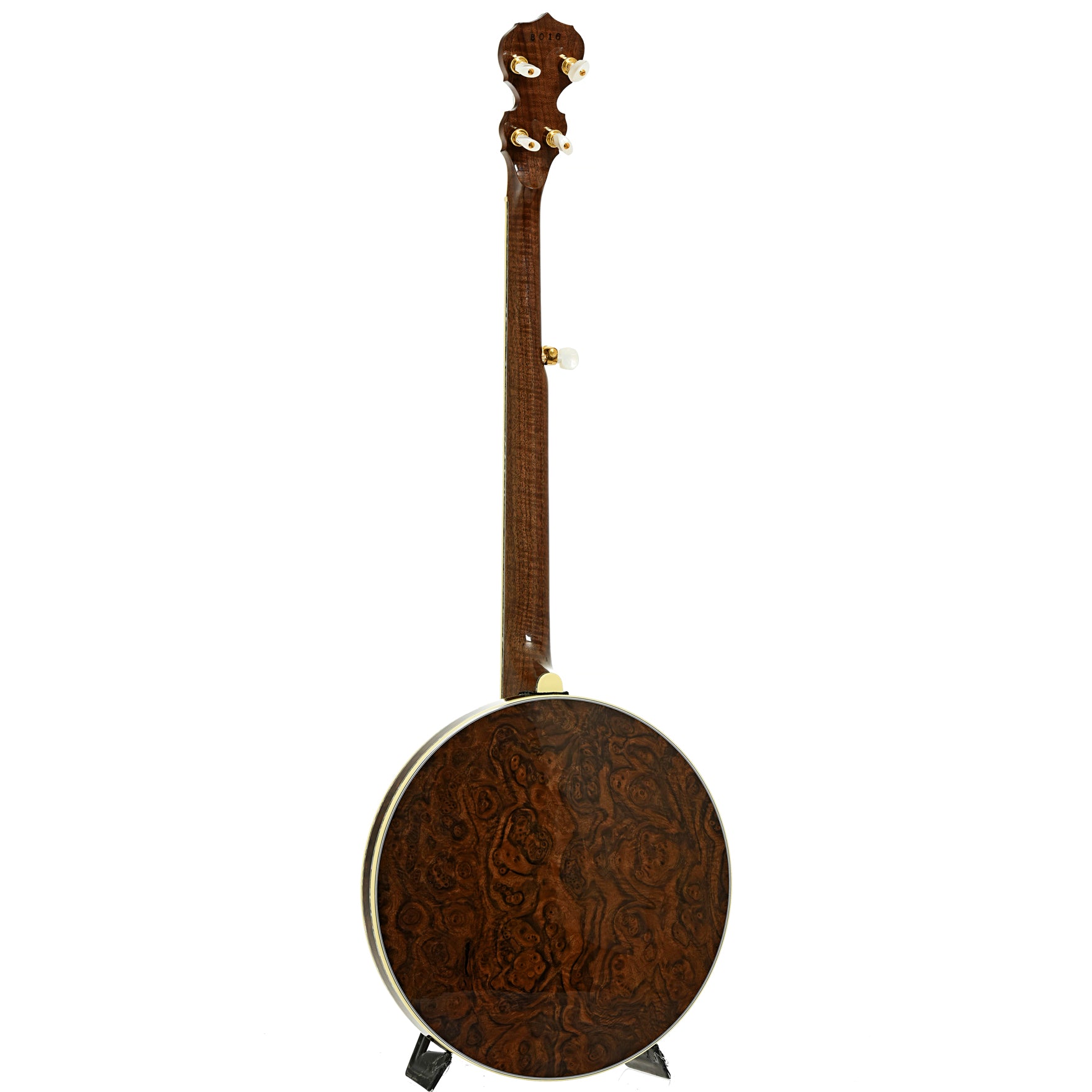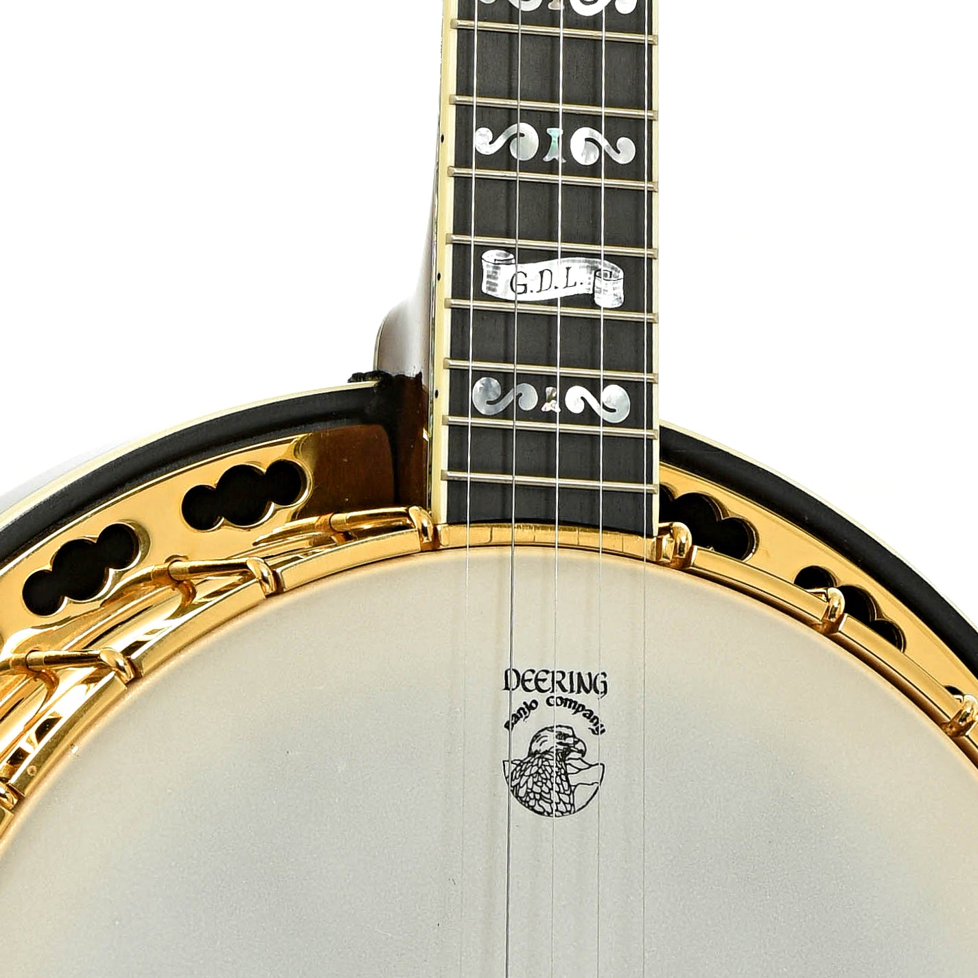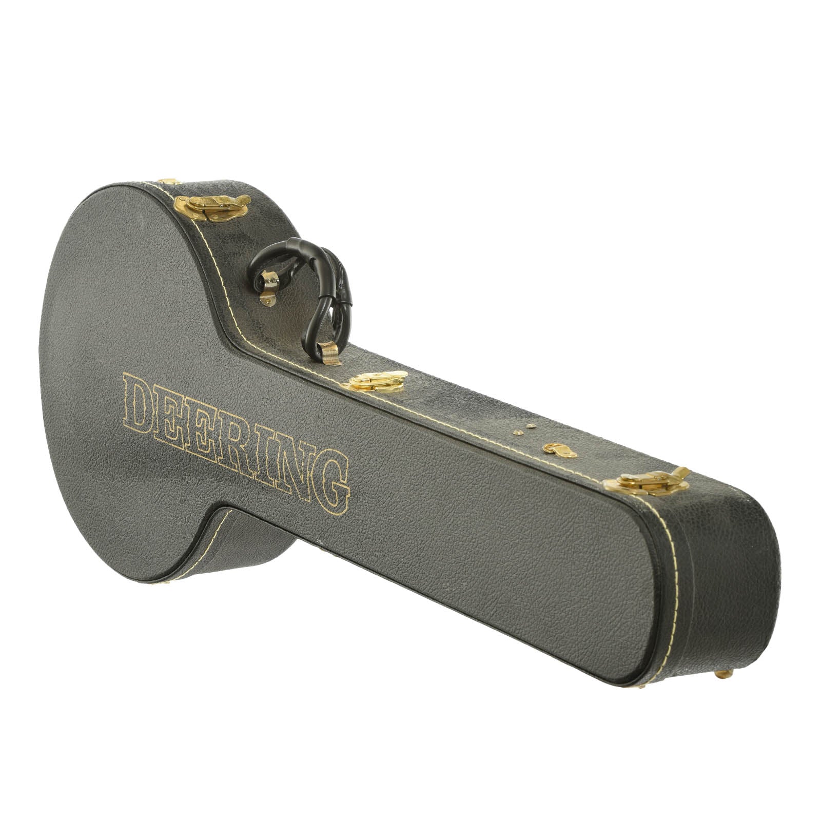 Super clean and shiny with lots of gold hardware, this Greg Deering LTD resonator banjo is a show stopper! Premium features include a burled walnut resonator and walnut neck, no-hole flathead tone ring, bound ebony fingerboard, and Deering planetary tuners. Bright and banging tone. Appointments of pearl and abalone inlay. Original hard shell case. Made in USA.