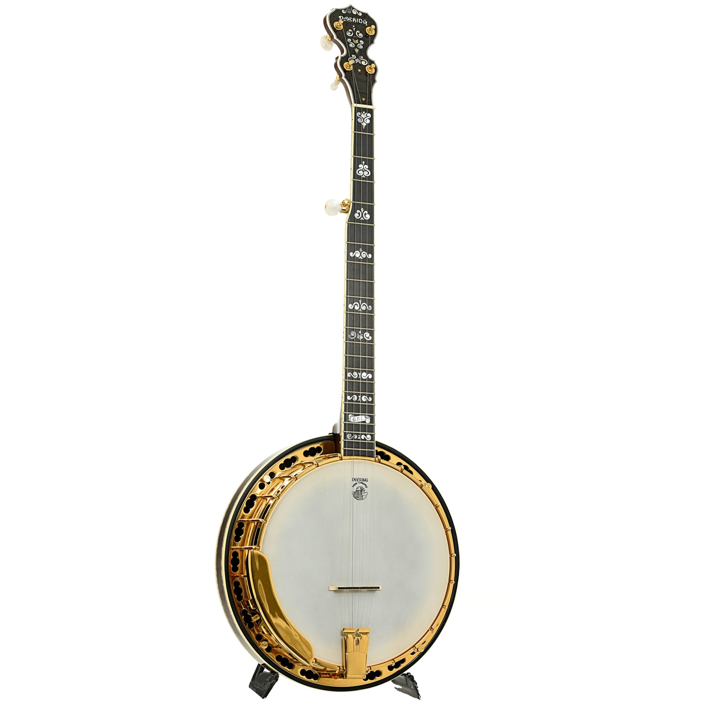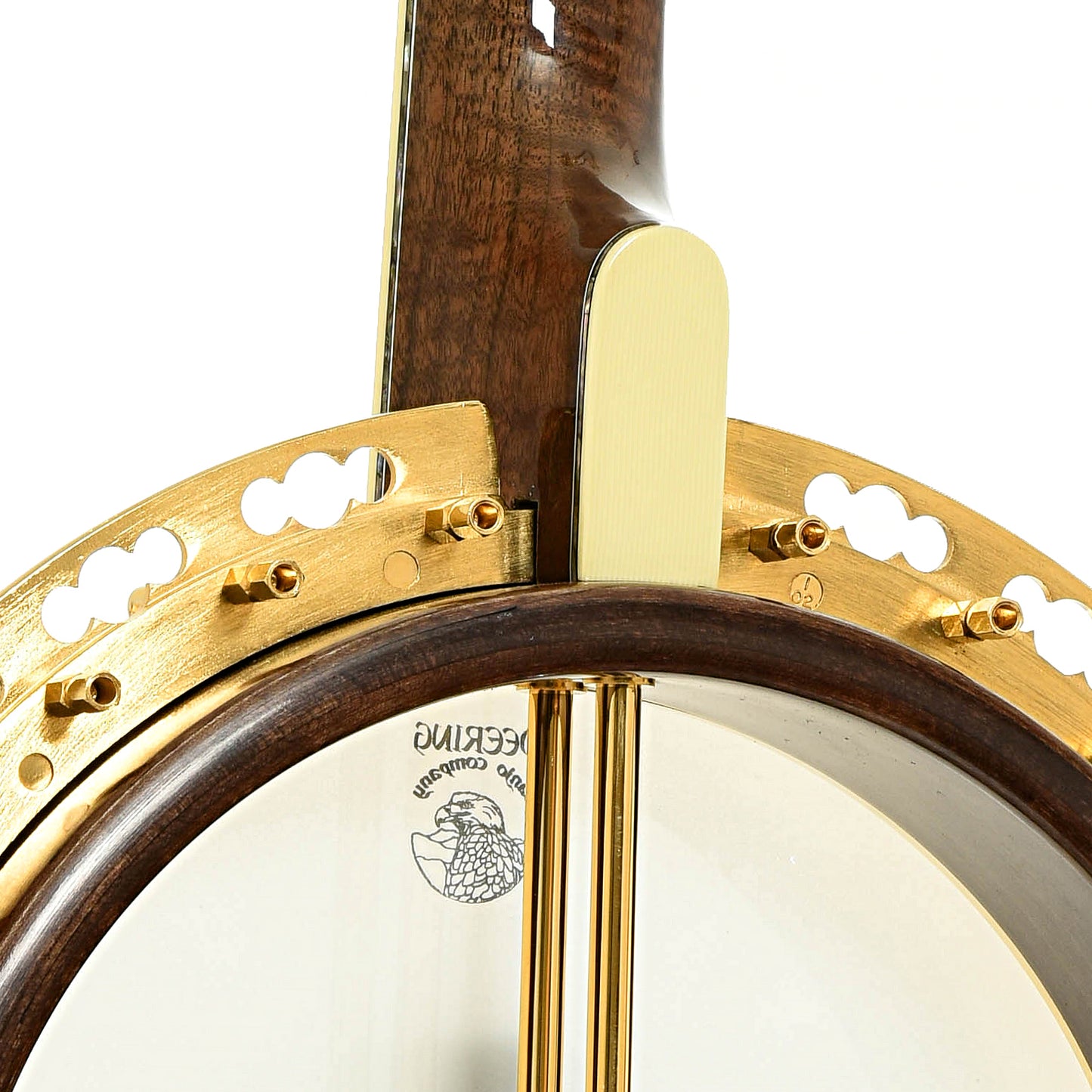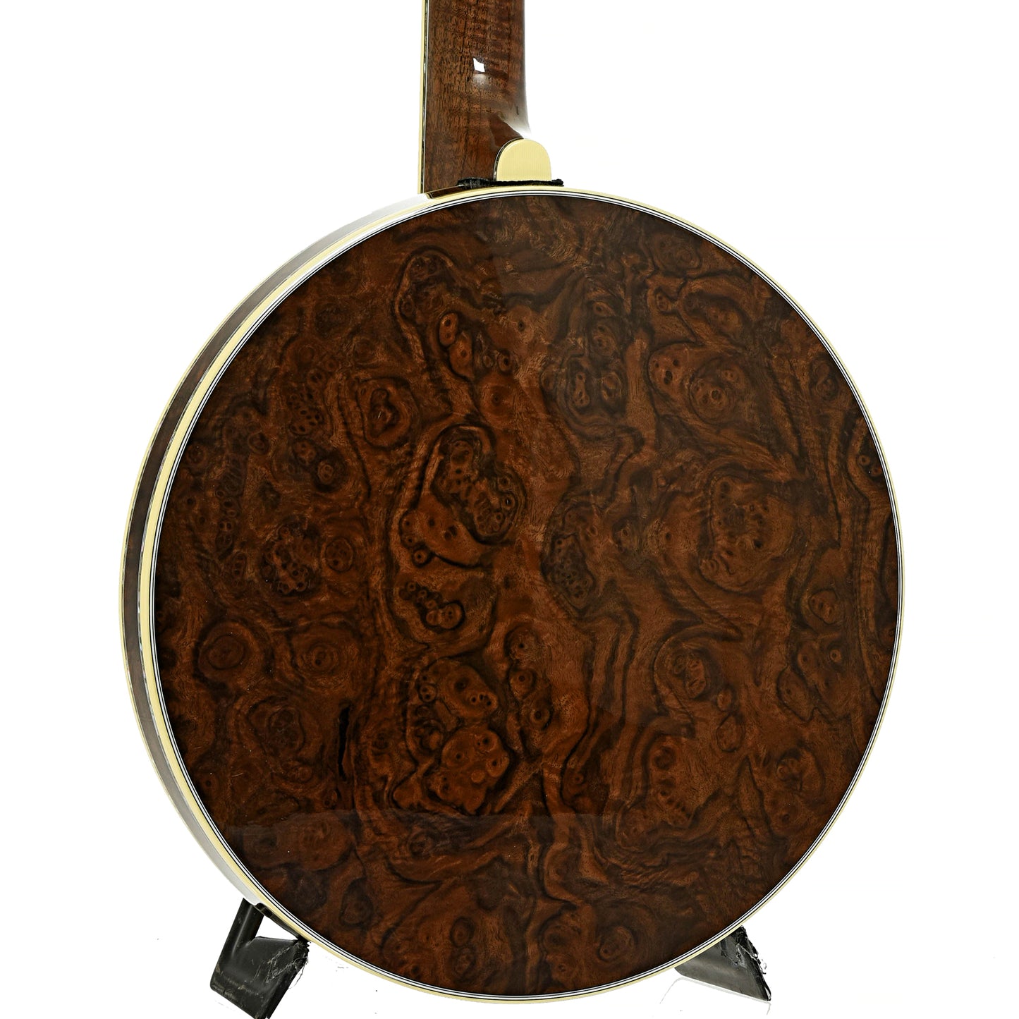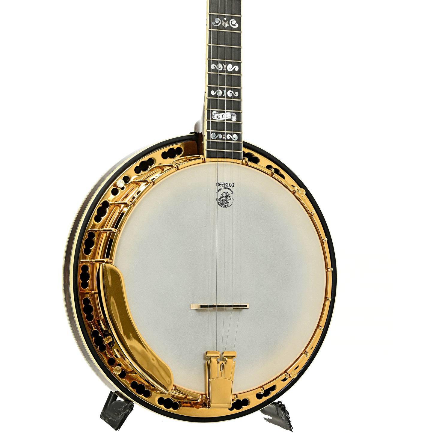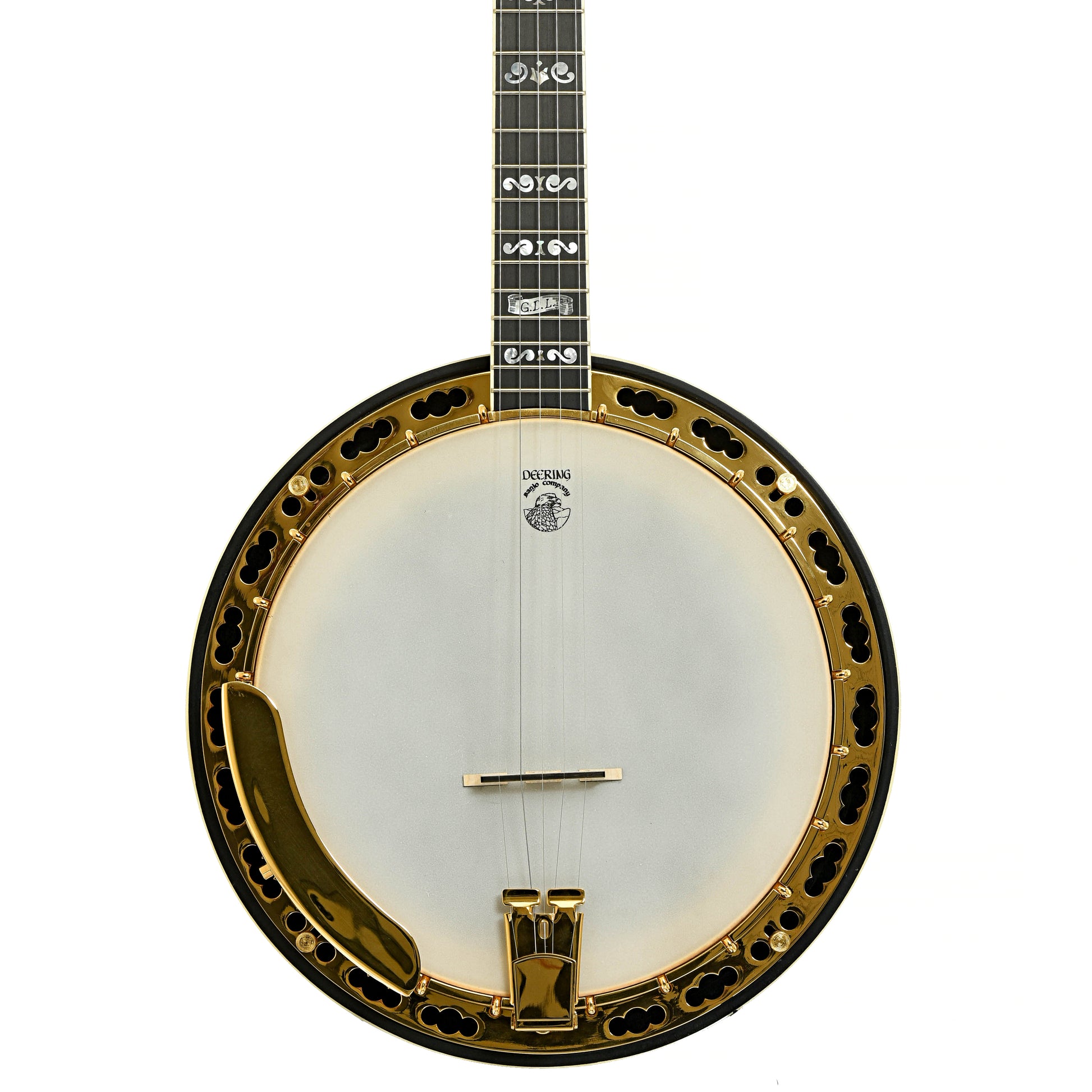 Super clean and shiny with lots of gold hardware, this Greg Deering LTD resonator banjo is a show stopper! Premium features include a burled walnut resonator and walnut neck, no-hole flathead tone ring, bound ebony fingerboard, and Deering planetary tuners. Bright and banging tone. Appointments of pearl and abalone inlay. Original hard shell case. Made in USA.