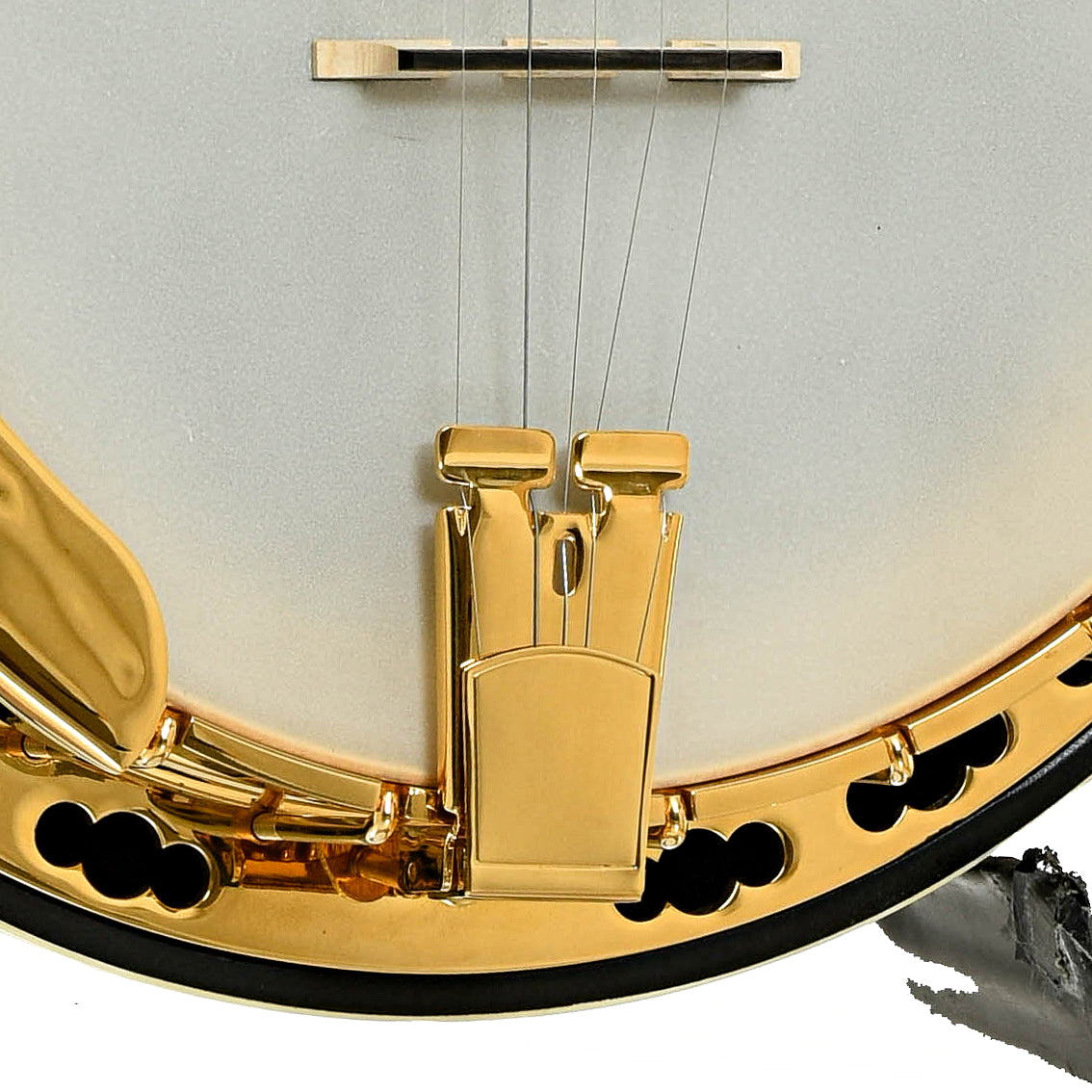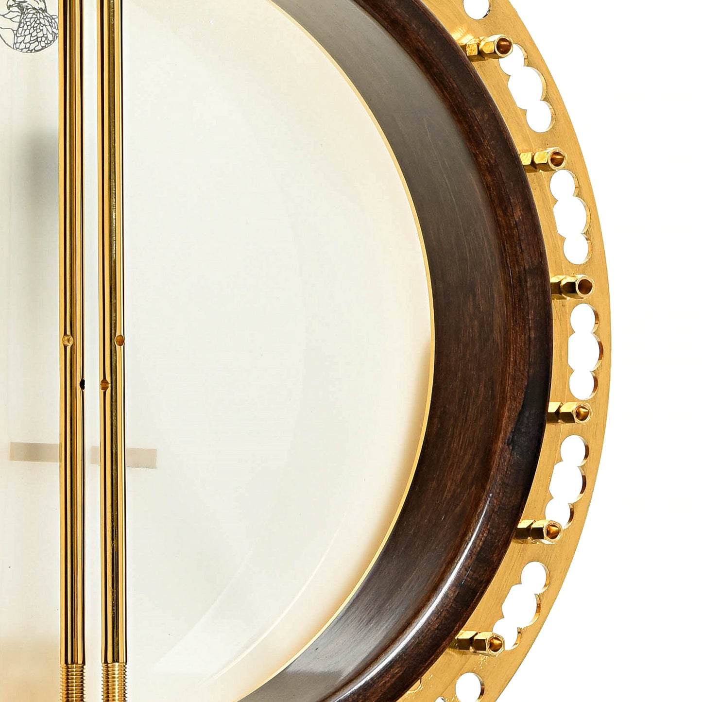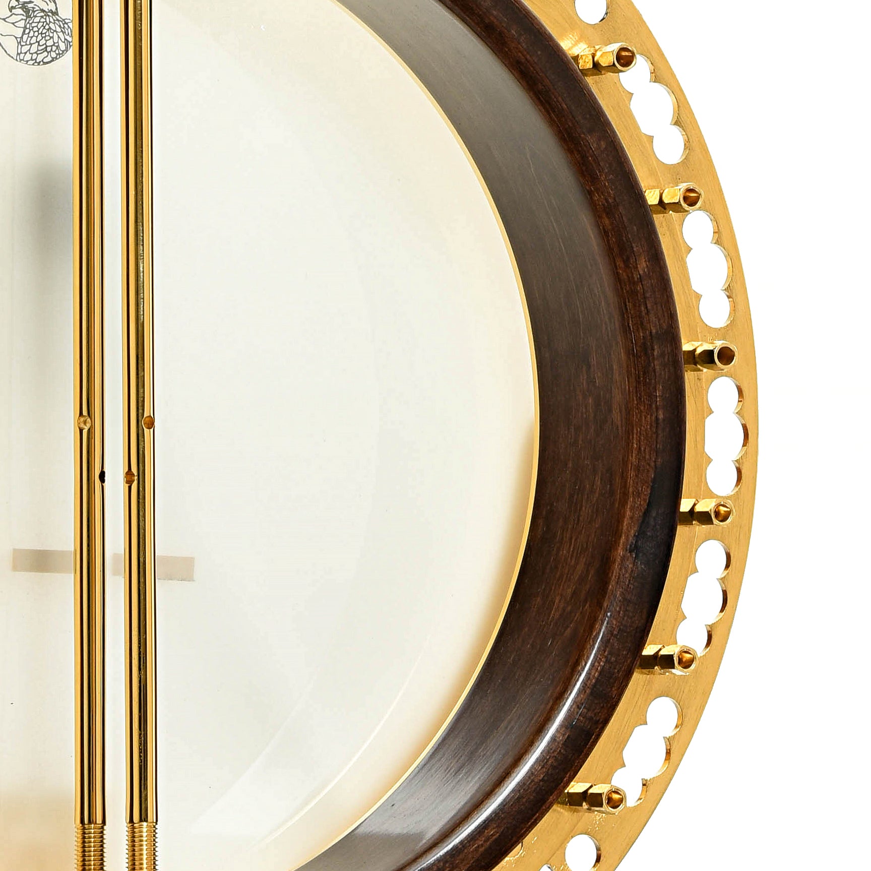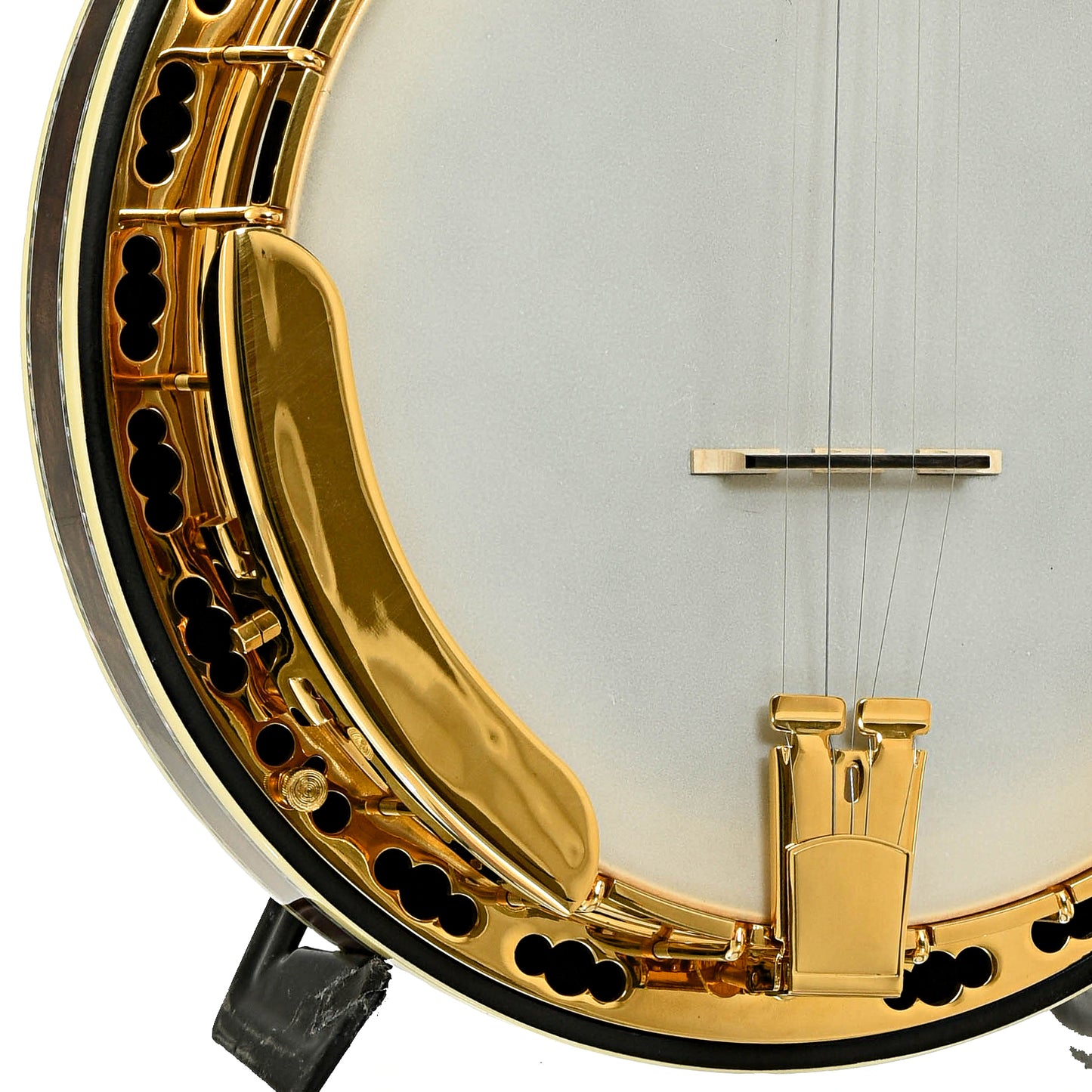 Super clean and shiny with lots of gold hardware, this Greg Deering LTD resonator banjo is a show stopper! Premium features include a burled walnut resonator and walnut neck, no-hole flathead tone ring, bound ebony fingerboard, and Deering planetary tuners. Bright and banging tone. Appointments of pearl and abalone inlay. Original hard shell case. Made in USA.