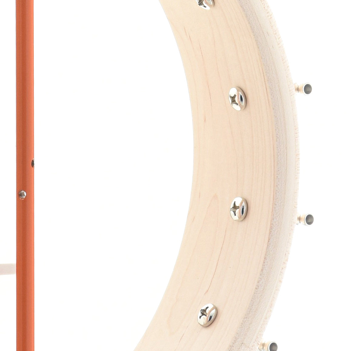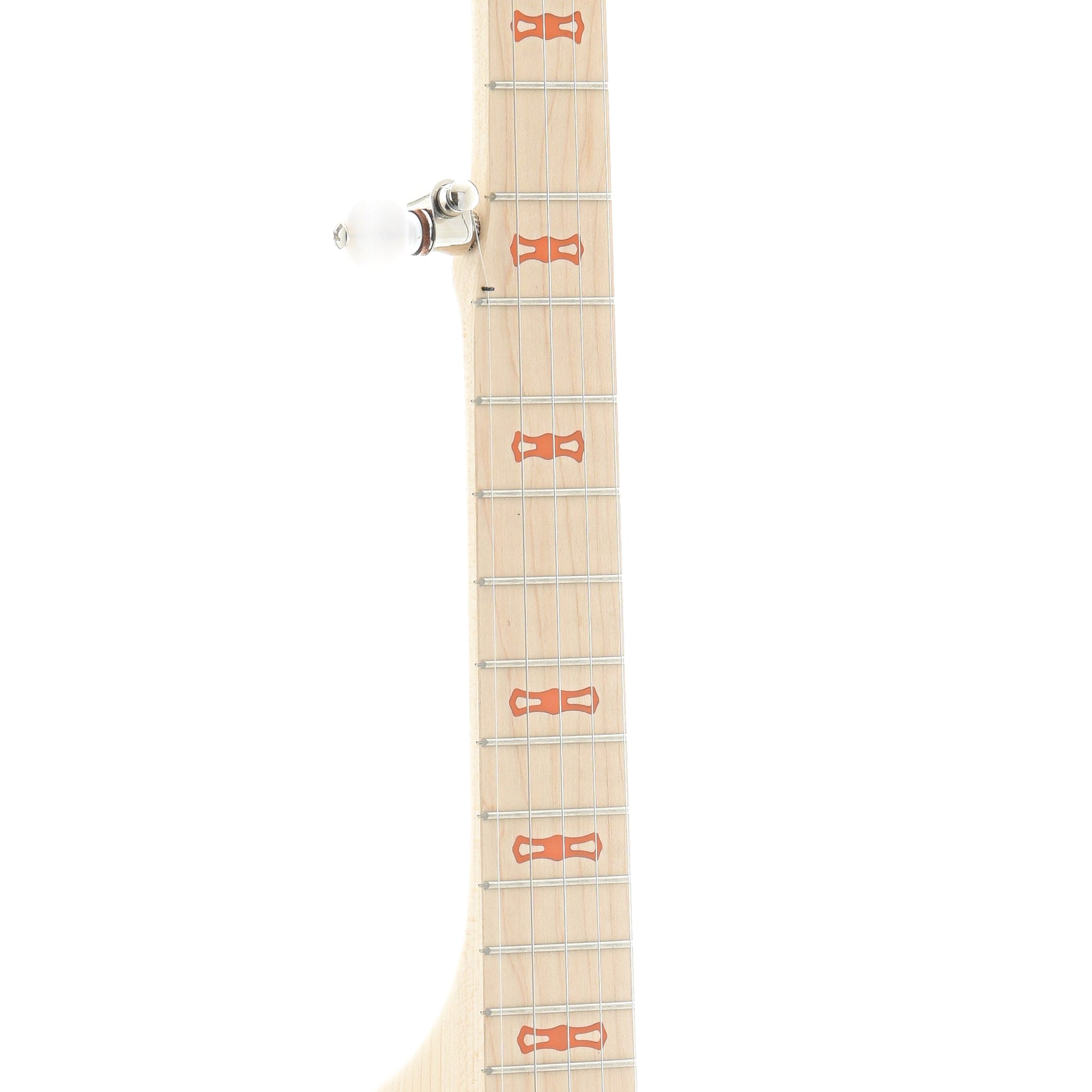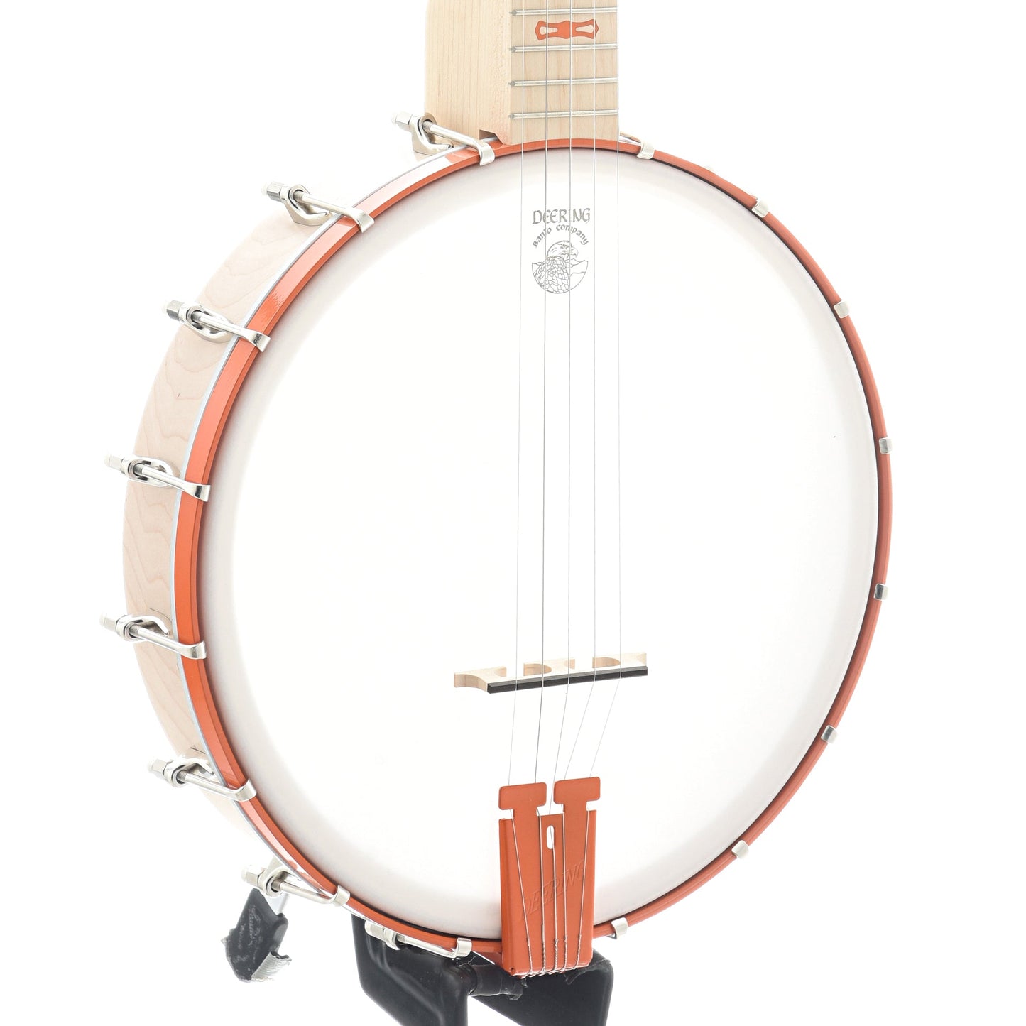 The Goodtime Junior is an updated version of Deering's popular Parlor Goodtime. It's just 33-1/2" long with a 23-1/8" scale, and it tunes to standard G tuning, making it a great choice for children, travelers, or anyone who’s looking for a smaller instrument. It features an 11” 3-ply Deering's quality rim and a slender maple neck. This model is outfitted with Chevy Orange hardware and matching inlays.