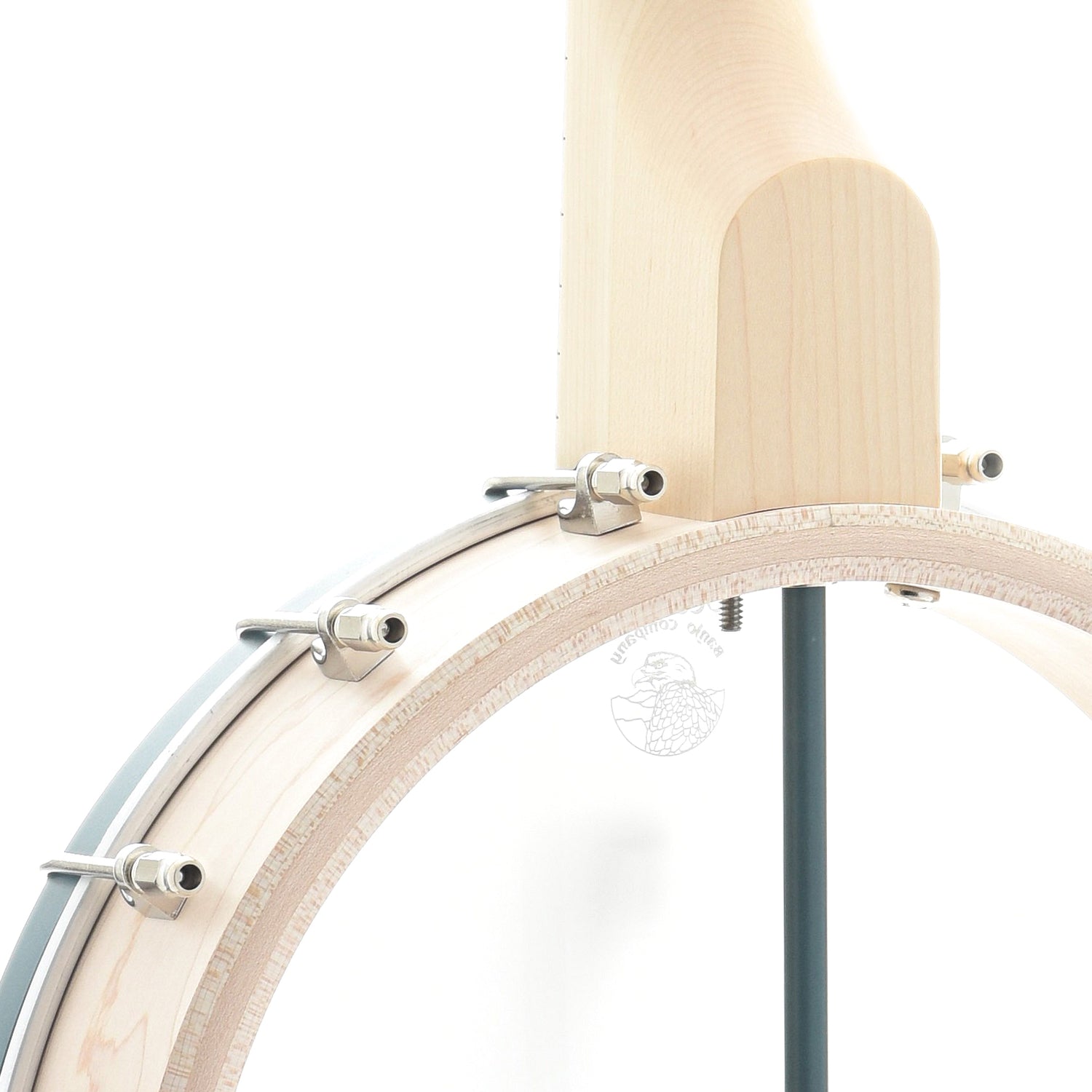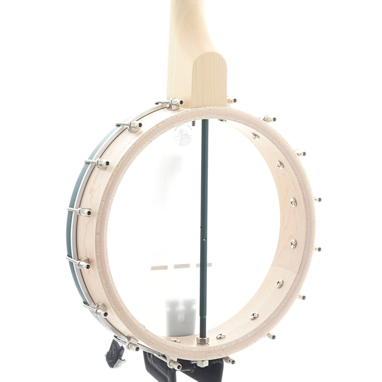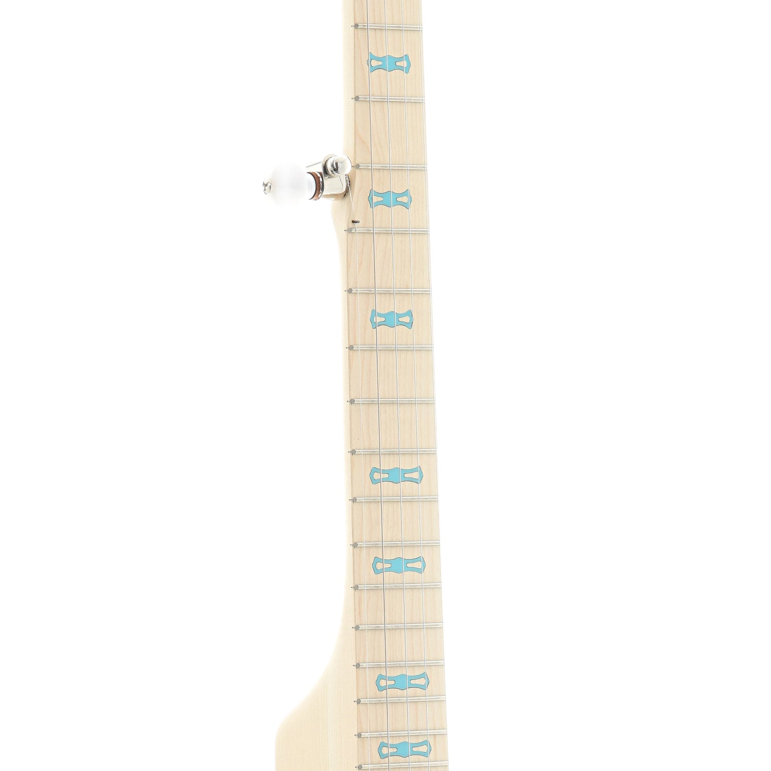 The Goodtime Junior is an updated version of Deering's popular Parlor Goodtime. It's just 33-1/2" long with a 23-1/8" scale, and it tunes to standard G tuning, making it a great choice for children, travelers, or anyone who’s looking for a smaller instrument. It features an 11” 3-ply Deering's quality rim and a slender maple neck. This model is outfitted with Seawater Teal hardware and matching inlays.