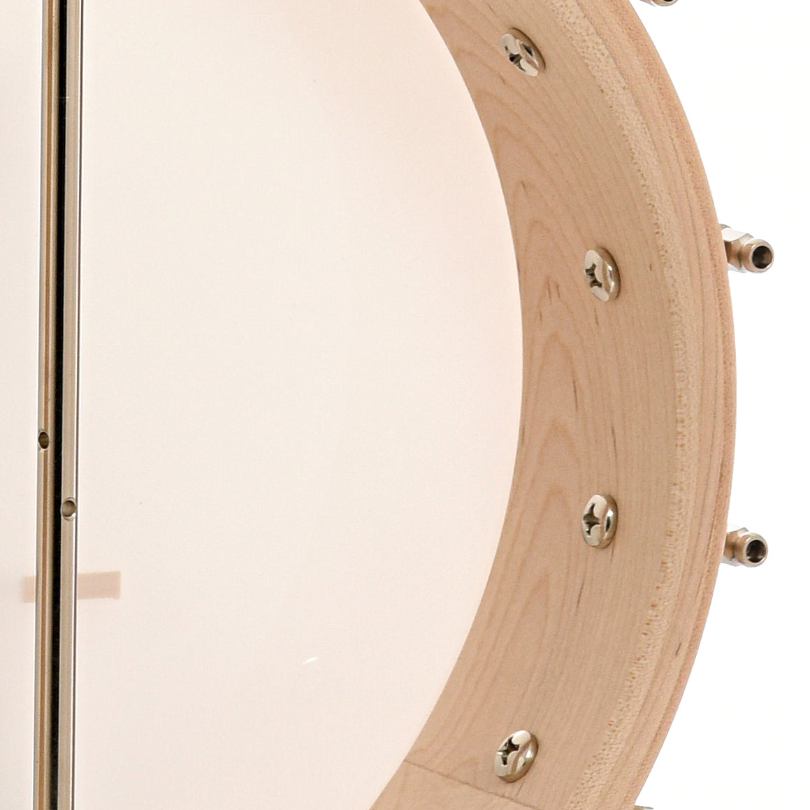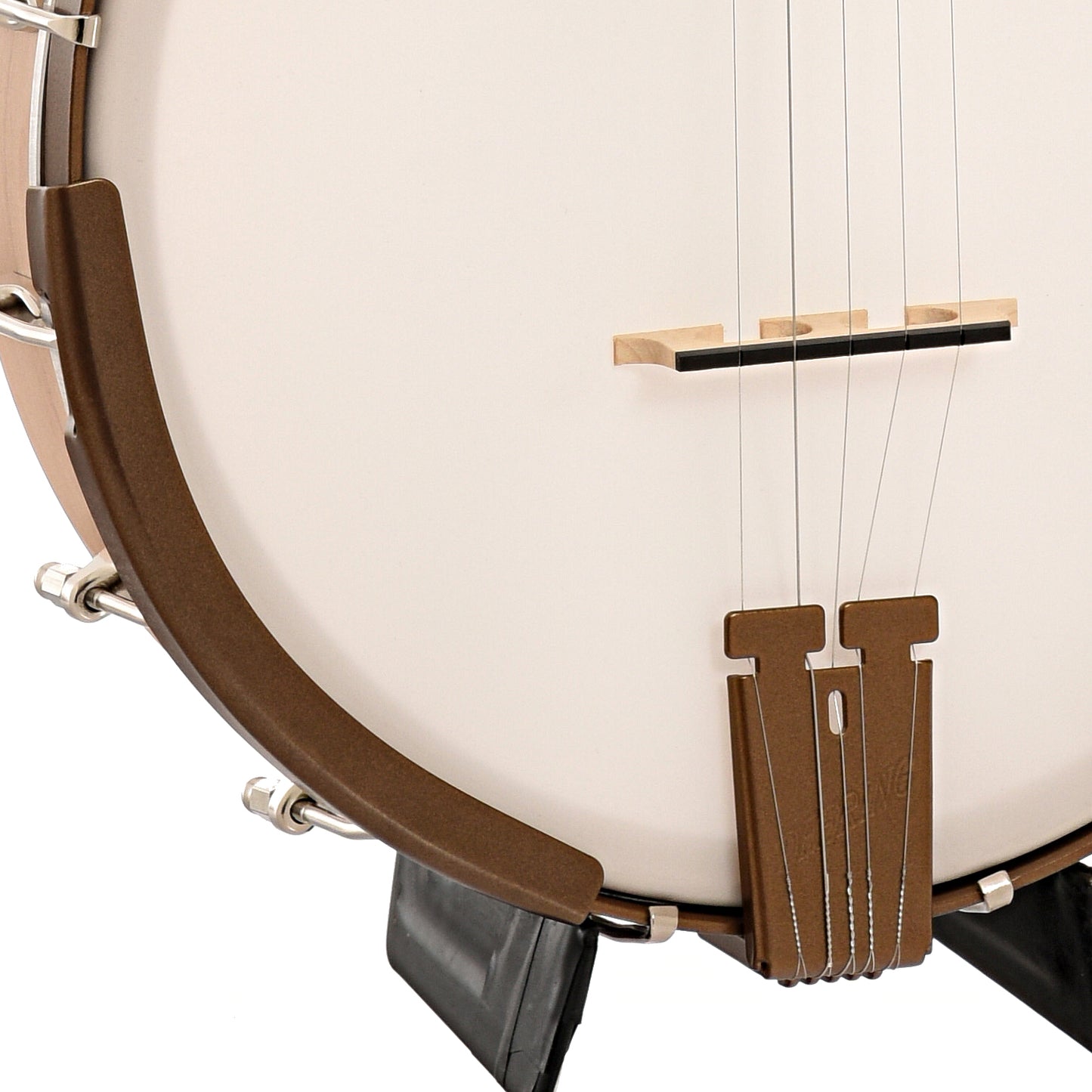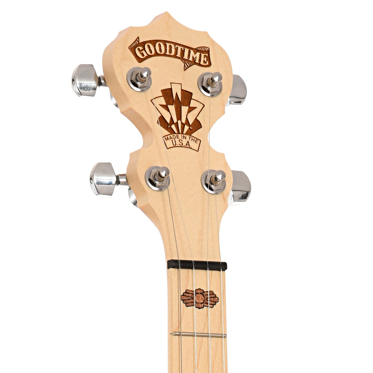 The Goodtime openback with Scoop features art deco style fingerboard inlays and peghead engraving. The scooped fretboard for easy play over the neck, makes it especially appealing to students of Old Time or Appalachian styles. Hardware finish is a combination of bronze powdercoat with nickel hooks & nuts. With its excellent tone and playability, the Goodtime banjo is a great student banjo. It has a slender rock maple neck and a 3-ply violin grade maple rim with an 11” frosted head.