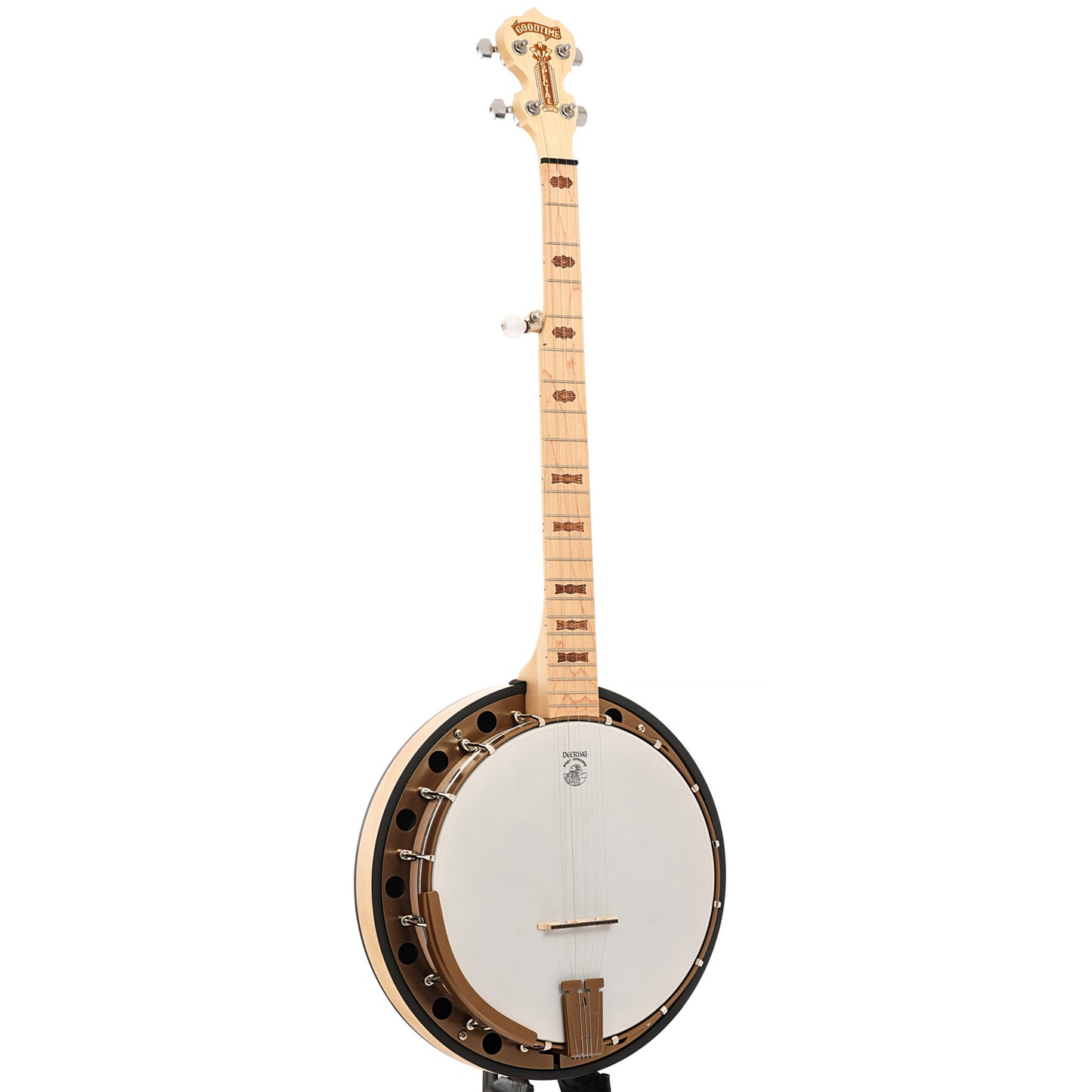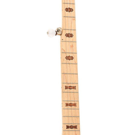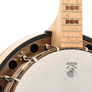 The Deering Goodtime Special model has Deering's patented steel tone ring for a bright and strong tone. With Art Deco Style fingerboard inlays, peghead engraving and bronze powdercoat finish on the tailpiece, tension hoop & armrest, it has great looks too. Made in USA.