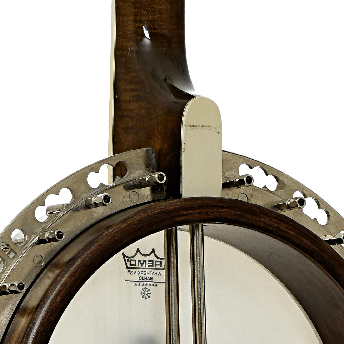 - Dark stained curly maple neck