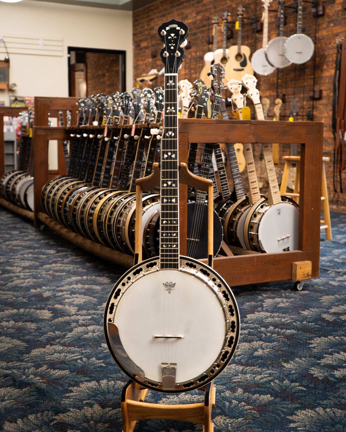 This Deering Maple Blossom delivers plenty of volume and tone! It features a walnut-stained curly maple neck and rim, a bound ebony flat fingerboard, a no-hole flathead tone ring, and a bound curly maple resonator. Railroad spikes are installed at frets 7, 9, and 10. Comes with the original hardshell case. Made in the USA. On consignment.