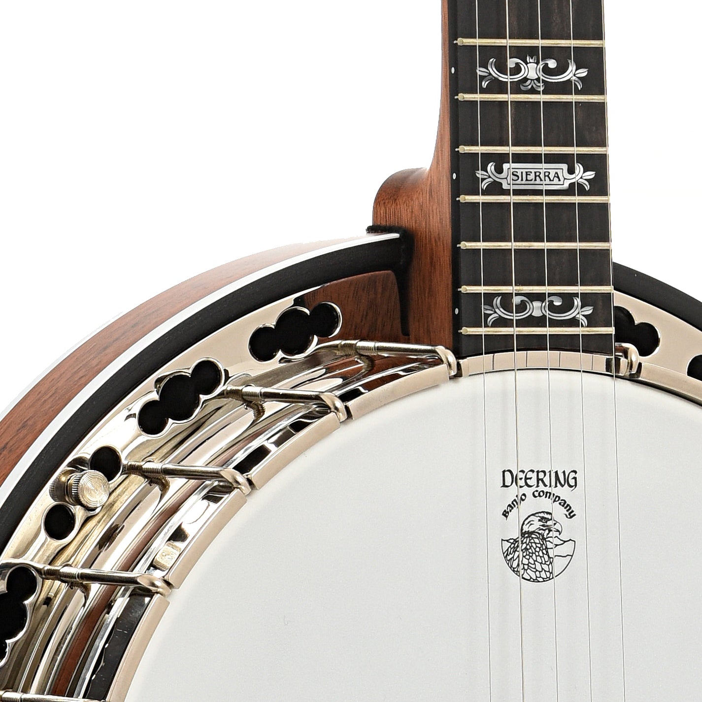 Deering's flagship Sierra series banjos feature much of the same quality and attention to detail as their premium banjos, but at a more affordable price. This model features a mahogany neck and resonator. The 3-ply maple rim is equipped with Deering's -06- 20-hole bell bronze tone ring. Fantastic tone and playability.