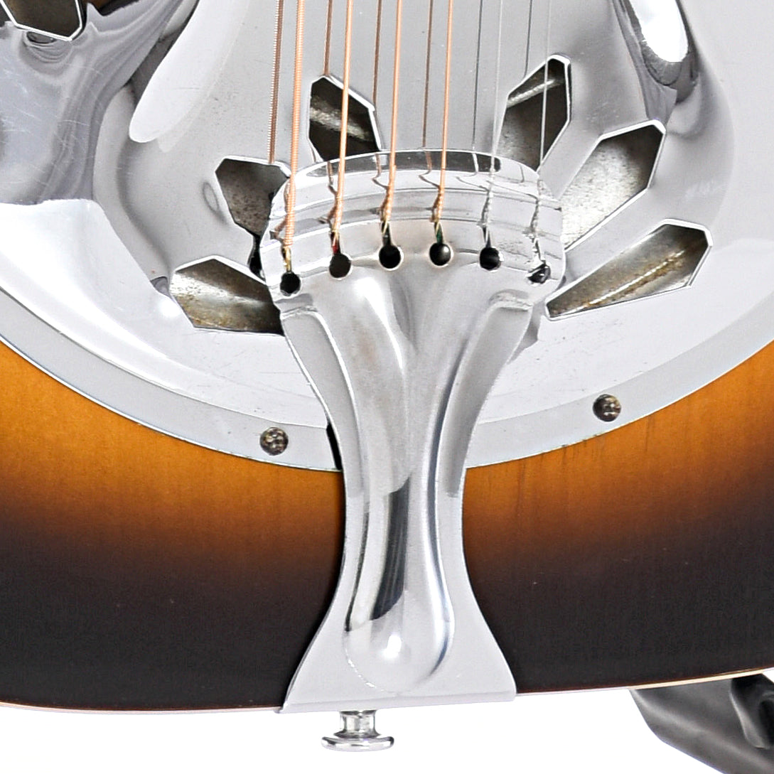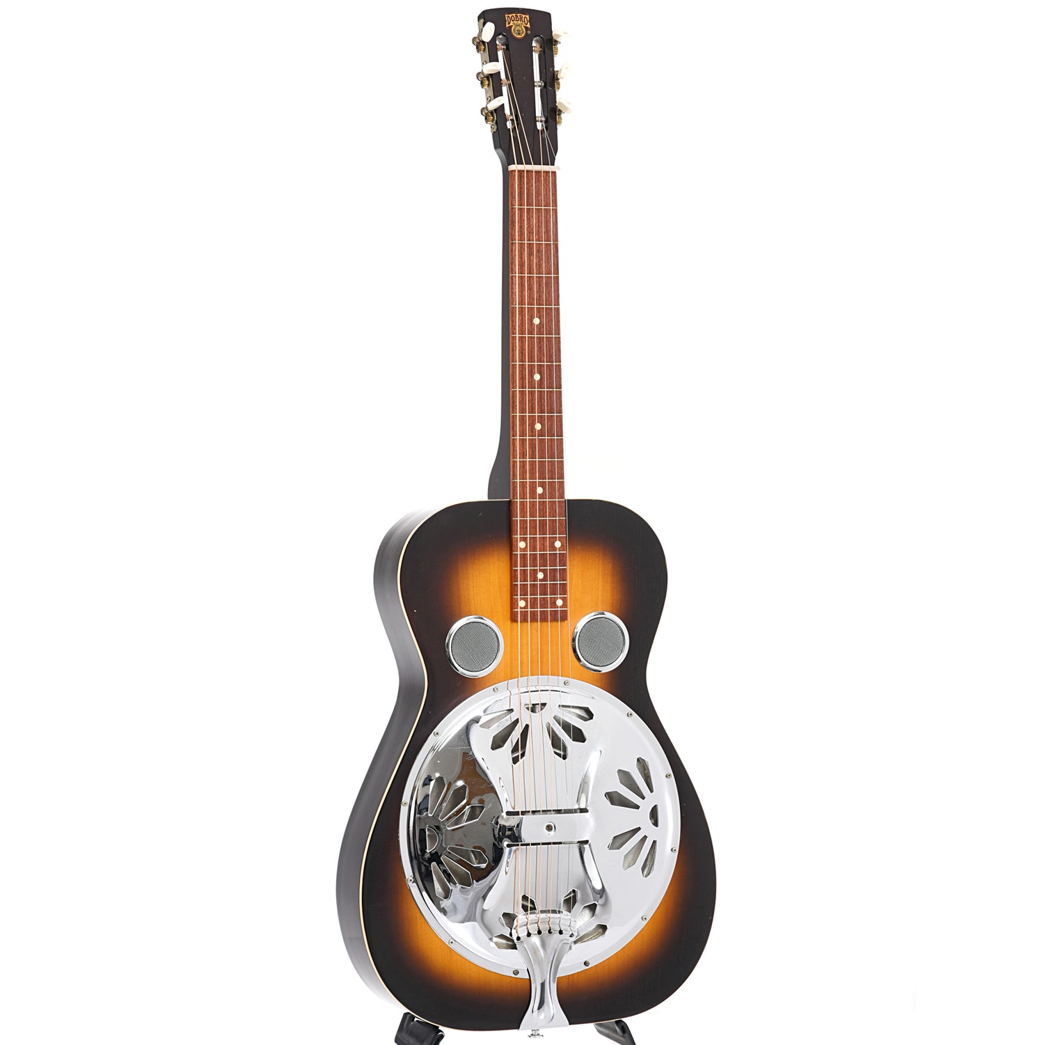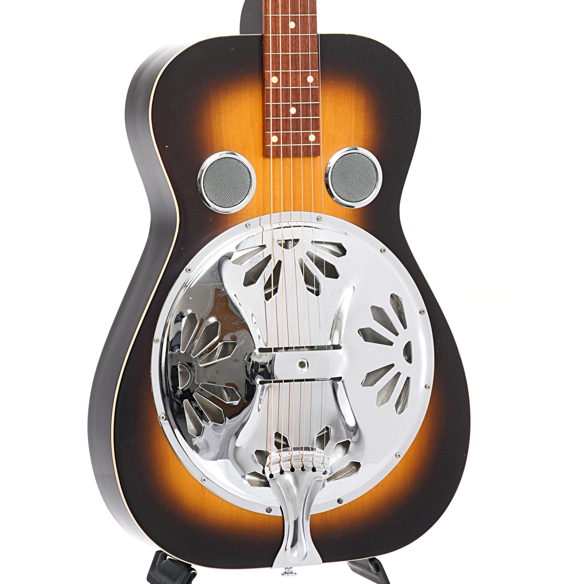 Good squareneck model with a nice vibe. Maple body. Sunburst top finish. Dual screenholes, soundwell, poinsettia coverplate. With OHSC (red lining).