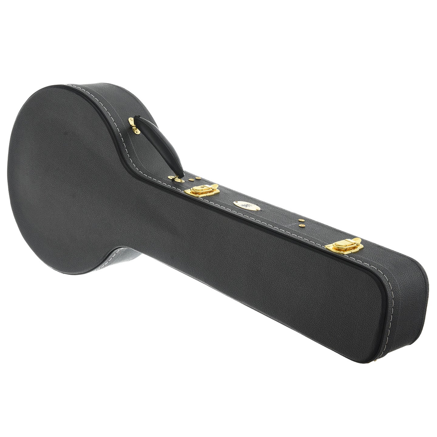 A very fine professional resonator banjo from David and Paul Hopkins, this Walnut Deluxe model features a figured walnut neck and double bound resonator. The Jimmy Cox 3-ply maple rim is fitted with a Hopkins flathead tone ring. Other appointments include ornate holly-leaf pattern fingerboard and peghead inlays, Waverly 2-band tuners & 5th sting peg with grained ivoroid buttons, an ebony fretboard, chrome plated hardware, a Kerschner tailpiece, a dual-action truss rod, and railroad spikes at frets 7, 9 & 10. A shaped wooden hardshell case is included. Simply put, this is a classic professional banjo made in Tennessee. Please note: the photos presented here are of the actual banjo.