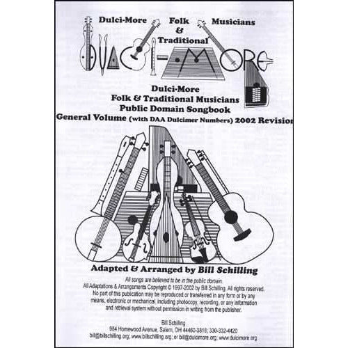 Huge songbook---almost 300 titles---with melody, lyrics, guitar chords and numbers for dulcimers tuned D-A-A. Chord charts for D-A-A, D-A-D and D-G-G-tuned dulcimers, too, as well as notes about basic theory and harmony. All songs are in the public domain, including 45 songs for Advent and Christmas. Great for singers and other instruments, too! Spiral-bound.