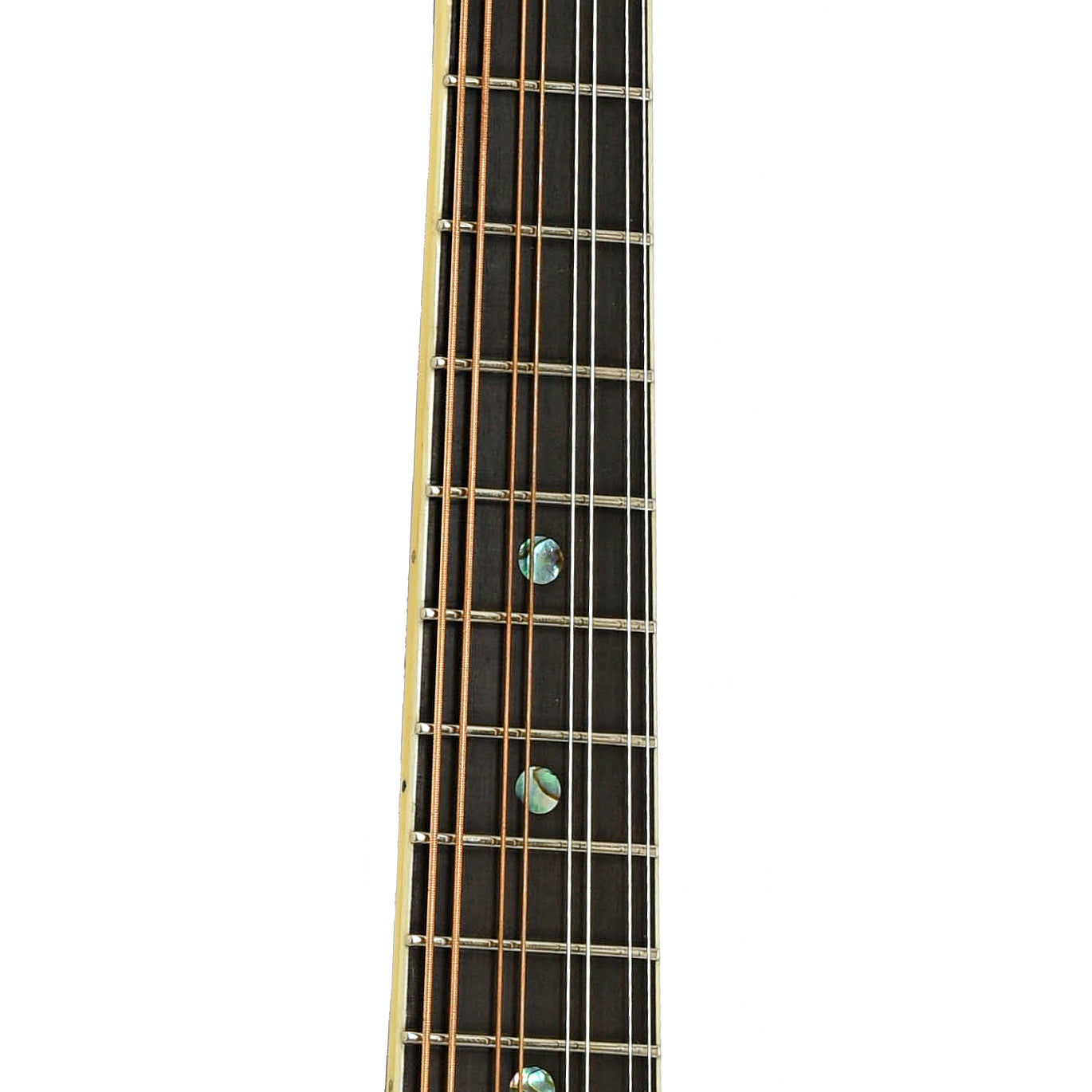 - White-bound 23-fret ebony fingerboard