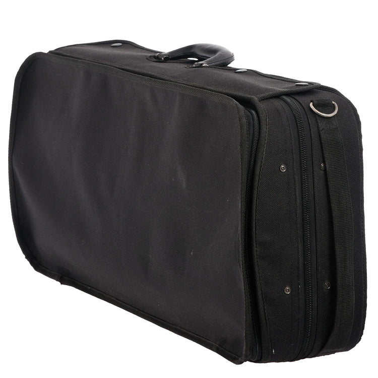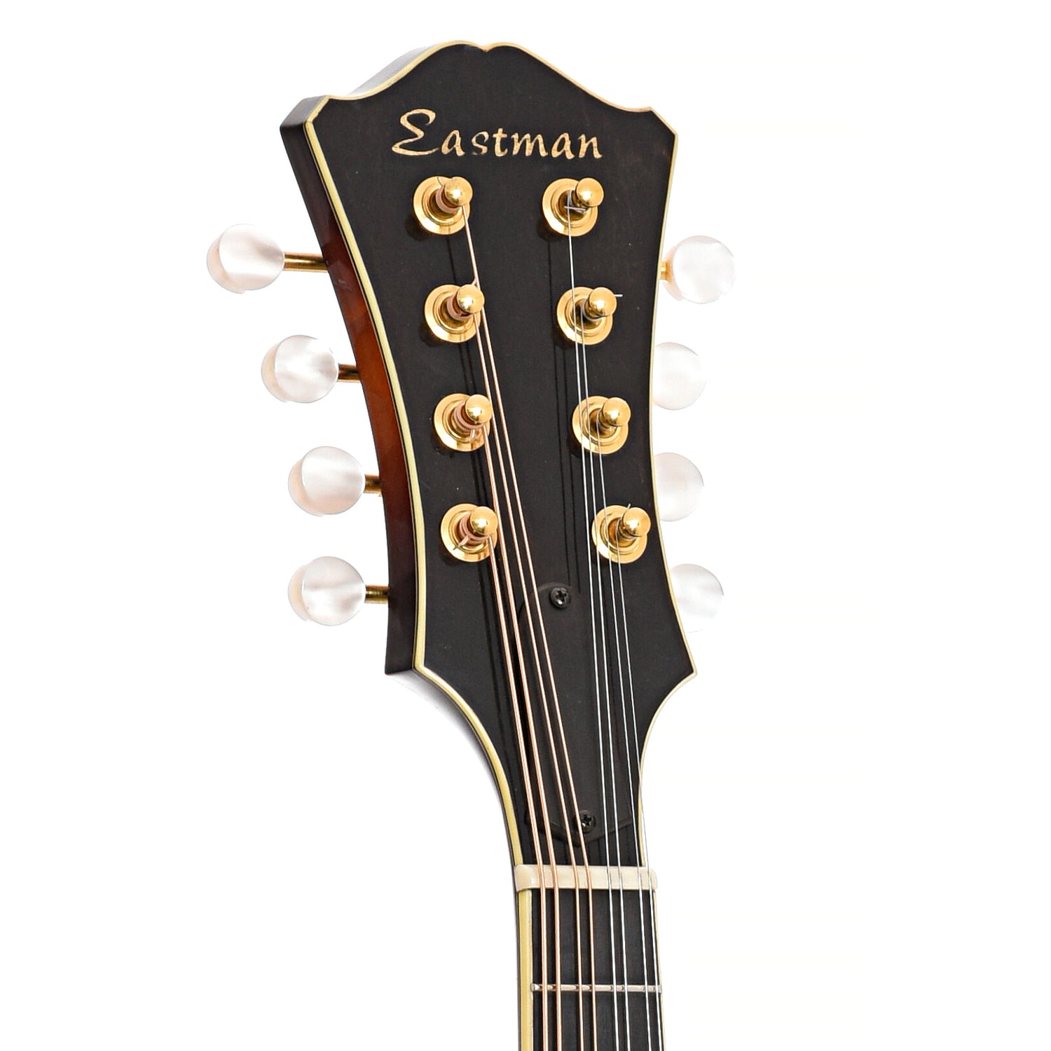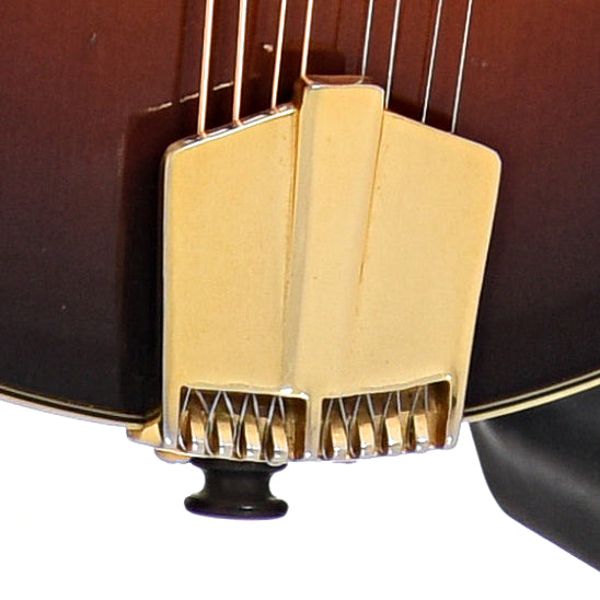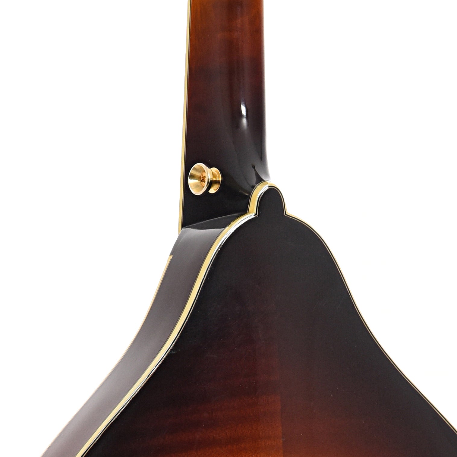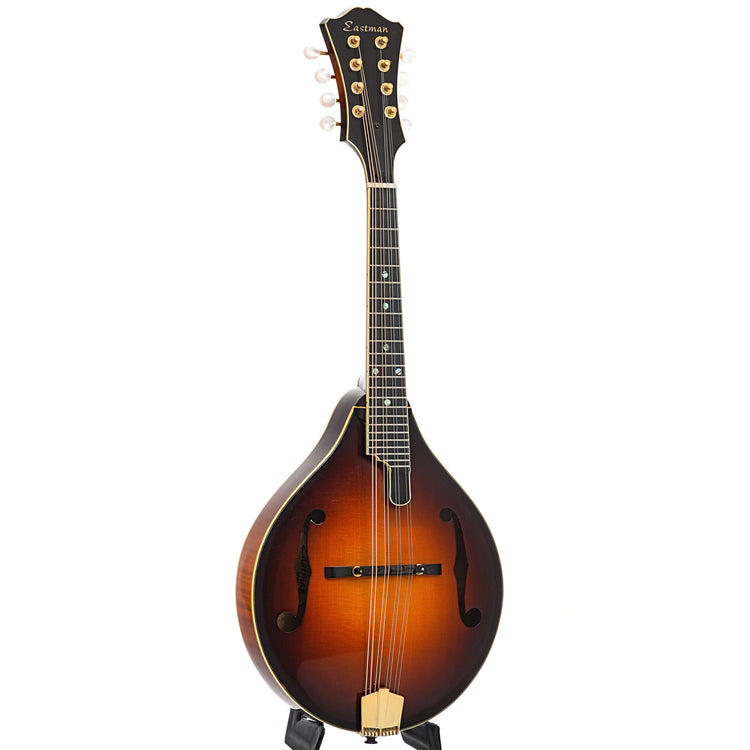 Early version of the MD805, this attractive and bright sounding A-style mandolin features a gloss sunburst finish on carved spruce top and flame maple back. Ebony fingerboard and bridge. Appointments are gold hardware, abalone dot markers, maple peghead overlay and backstrap. Oblong hard foam case. Built in China.