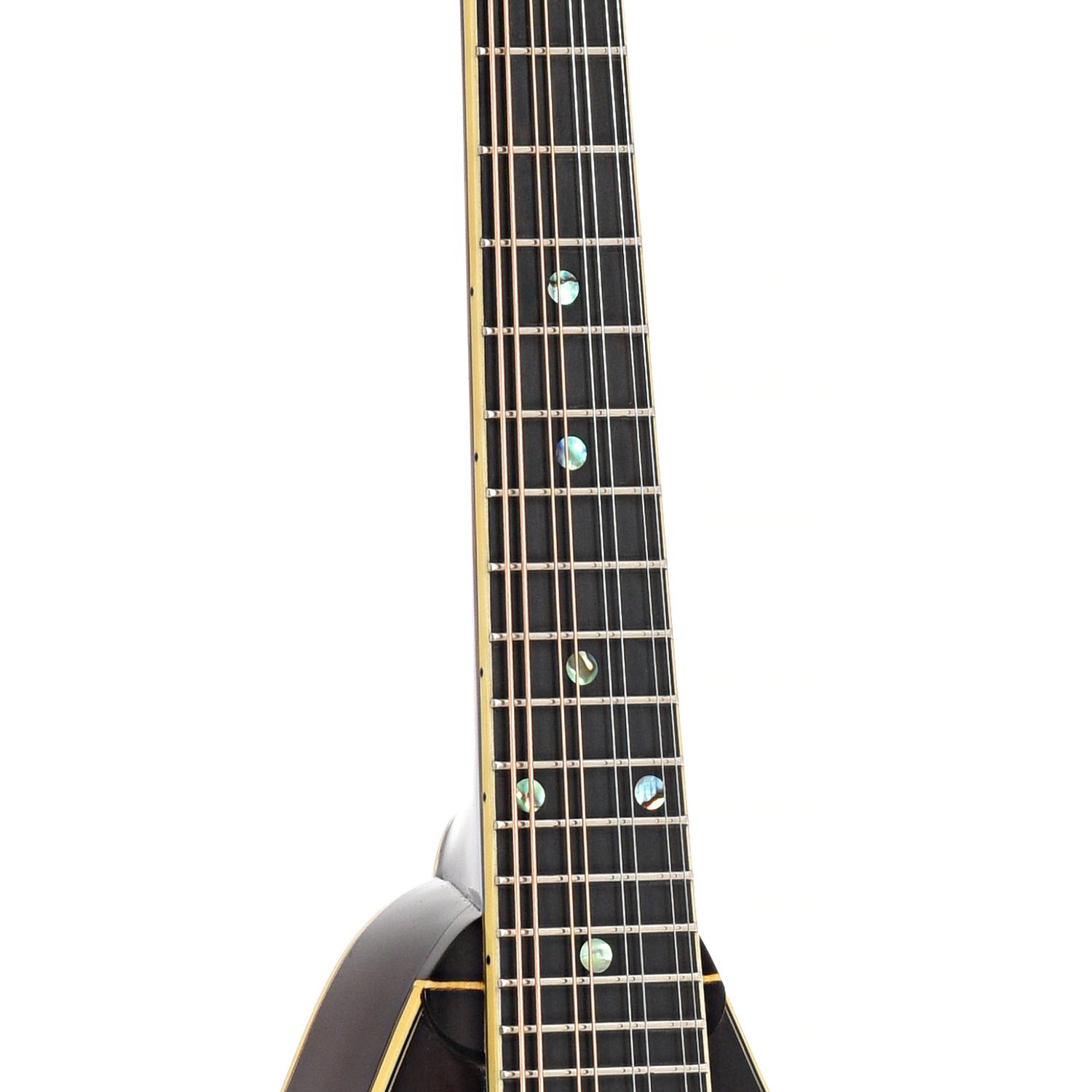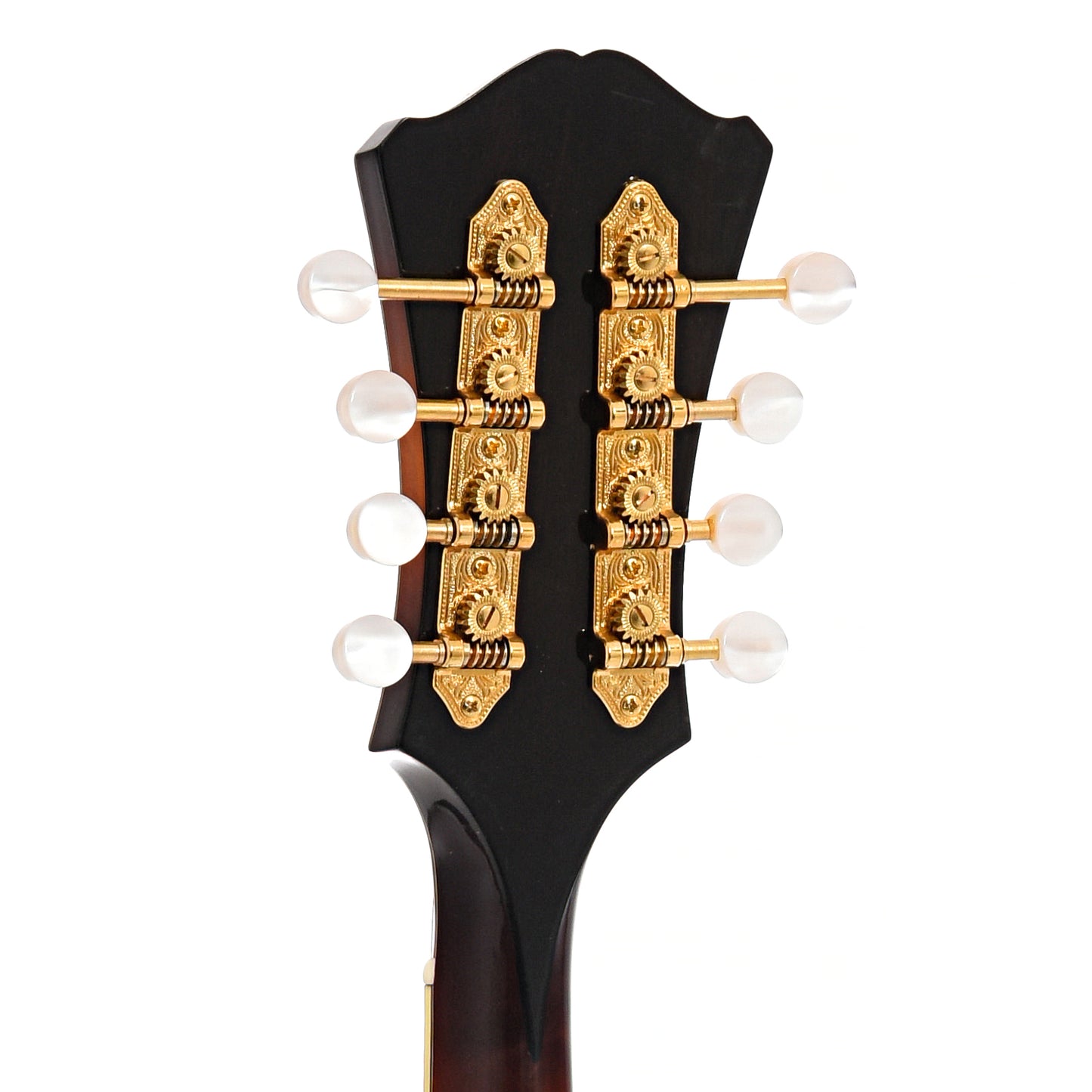 - Dark finished maple peghead overlay (and backstrap) features logo