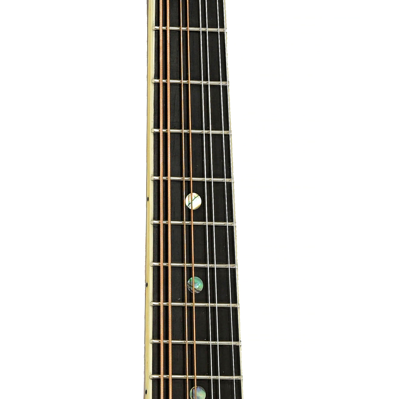 - Ebony radiused fingerboard, extension scooped after 23 frets