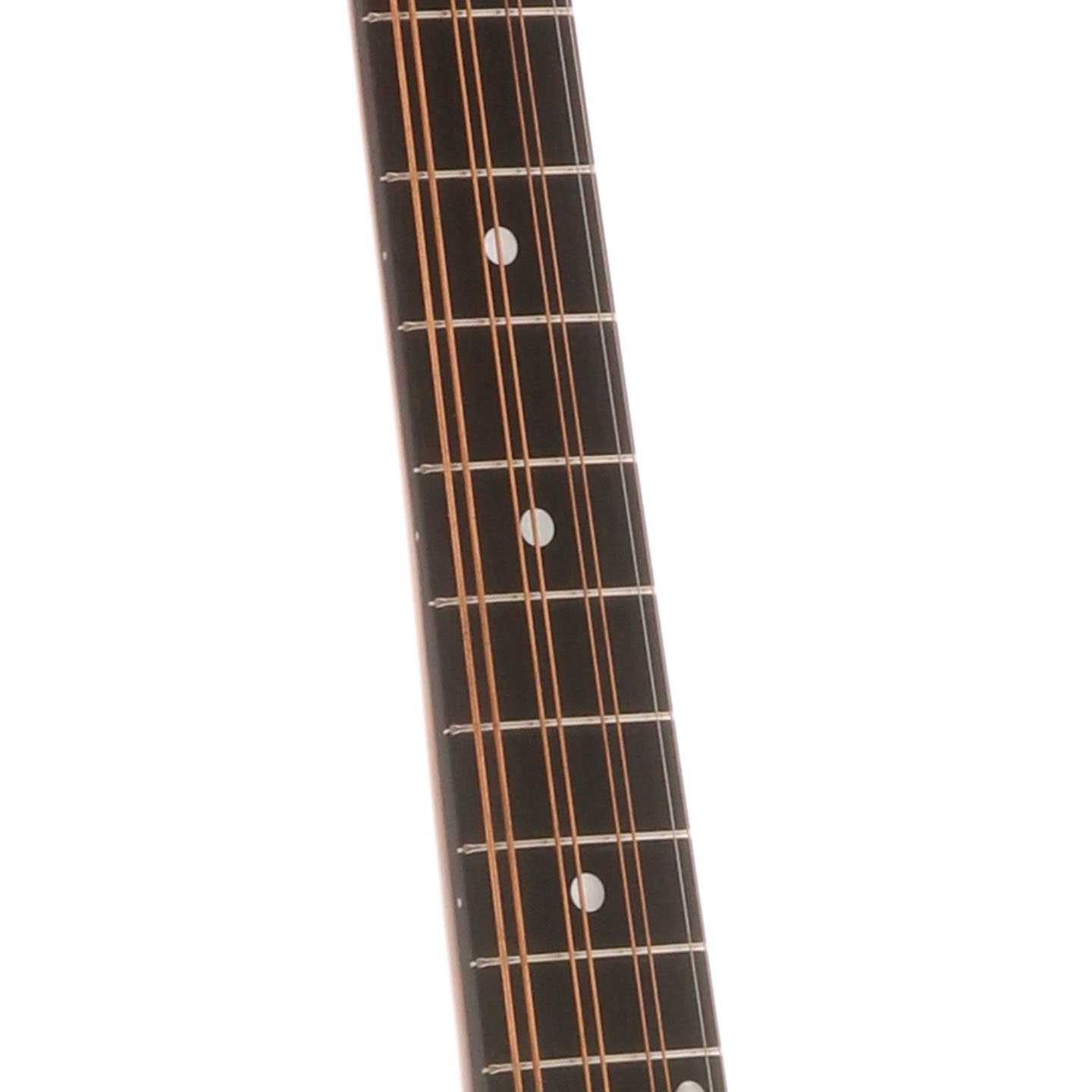 - Mother of pearl dot-inlaid radiused ebony fingerboard with stylized extension