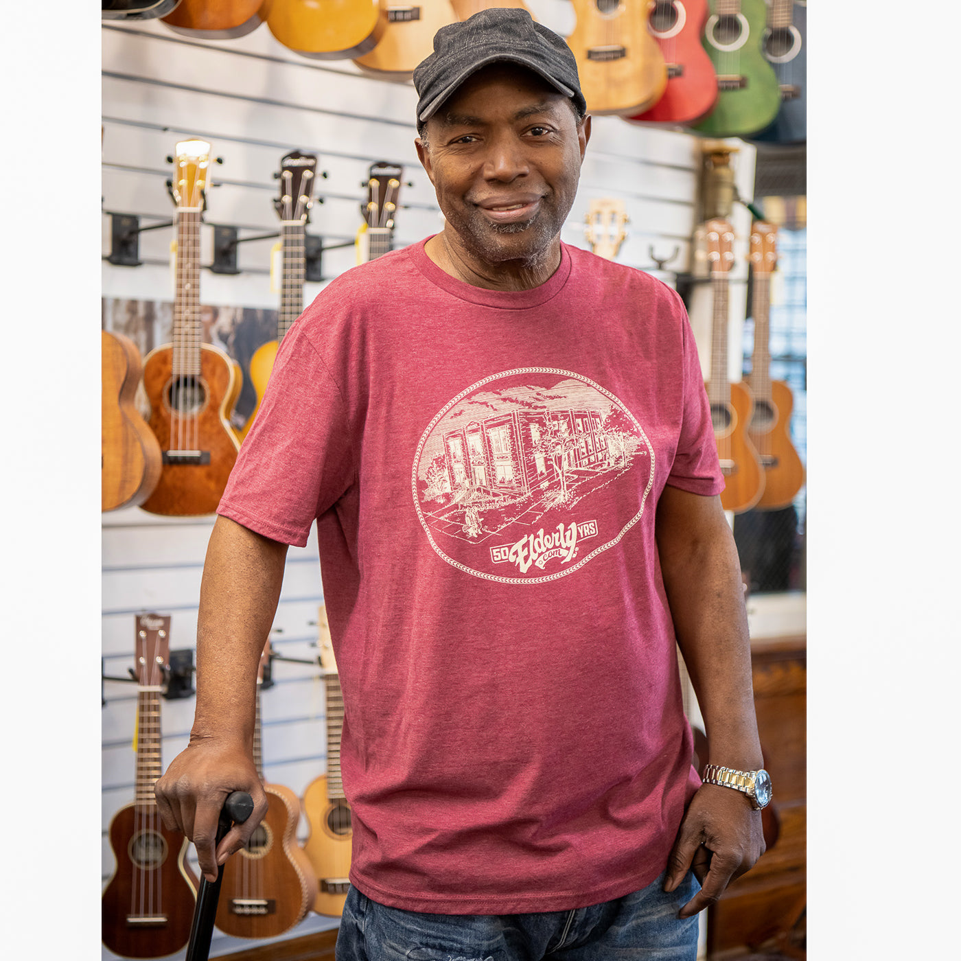 Featuring artwork of the Elderly Instruments building along with our 50th anniversary logo, these t-shirts are available in Medium, Large, Extra Large, and 2XL sizes.