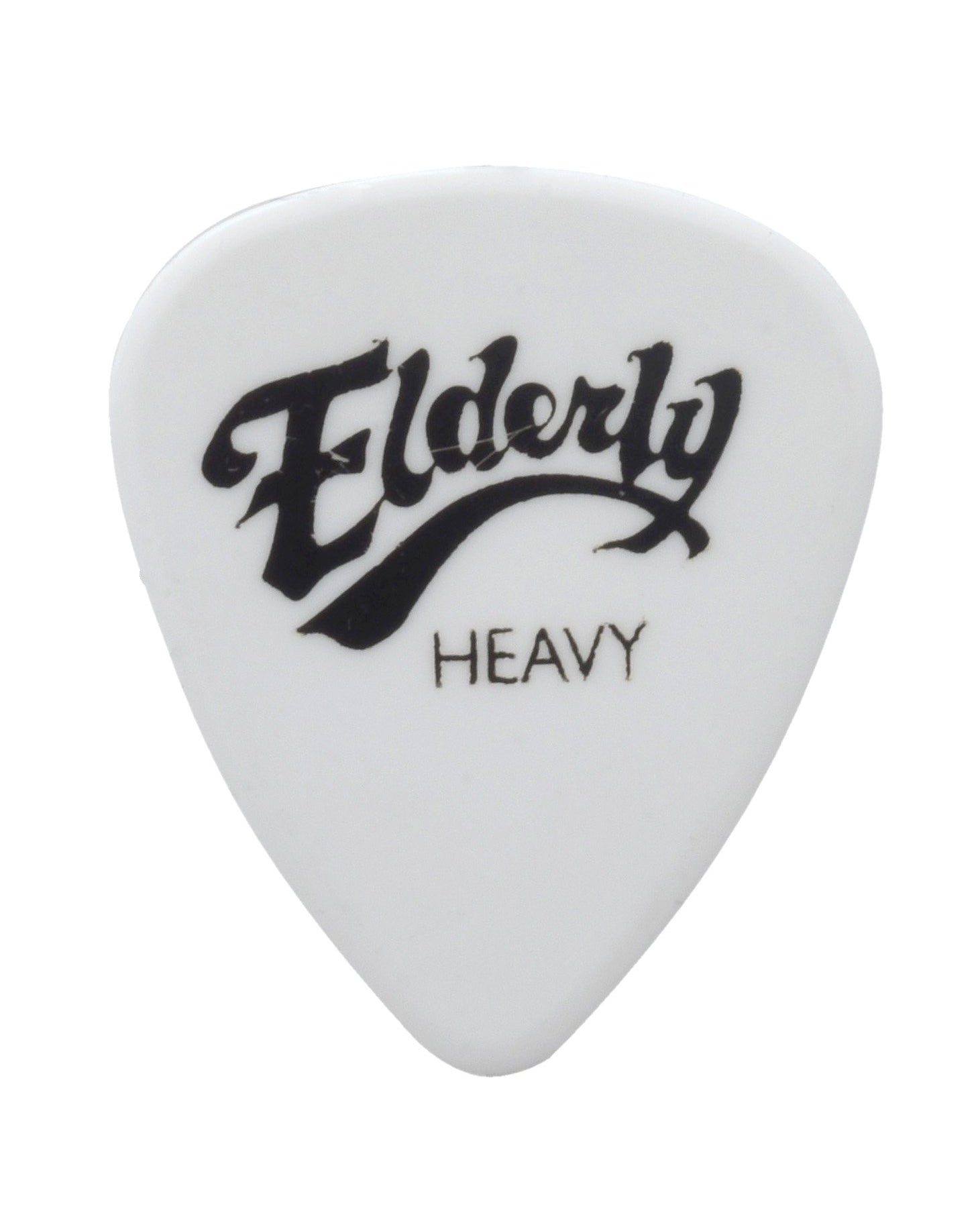 Heavy gauge .96, standard shape white delrin pick with Elderly Instruments logo.