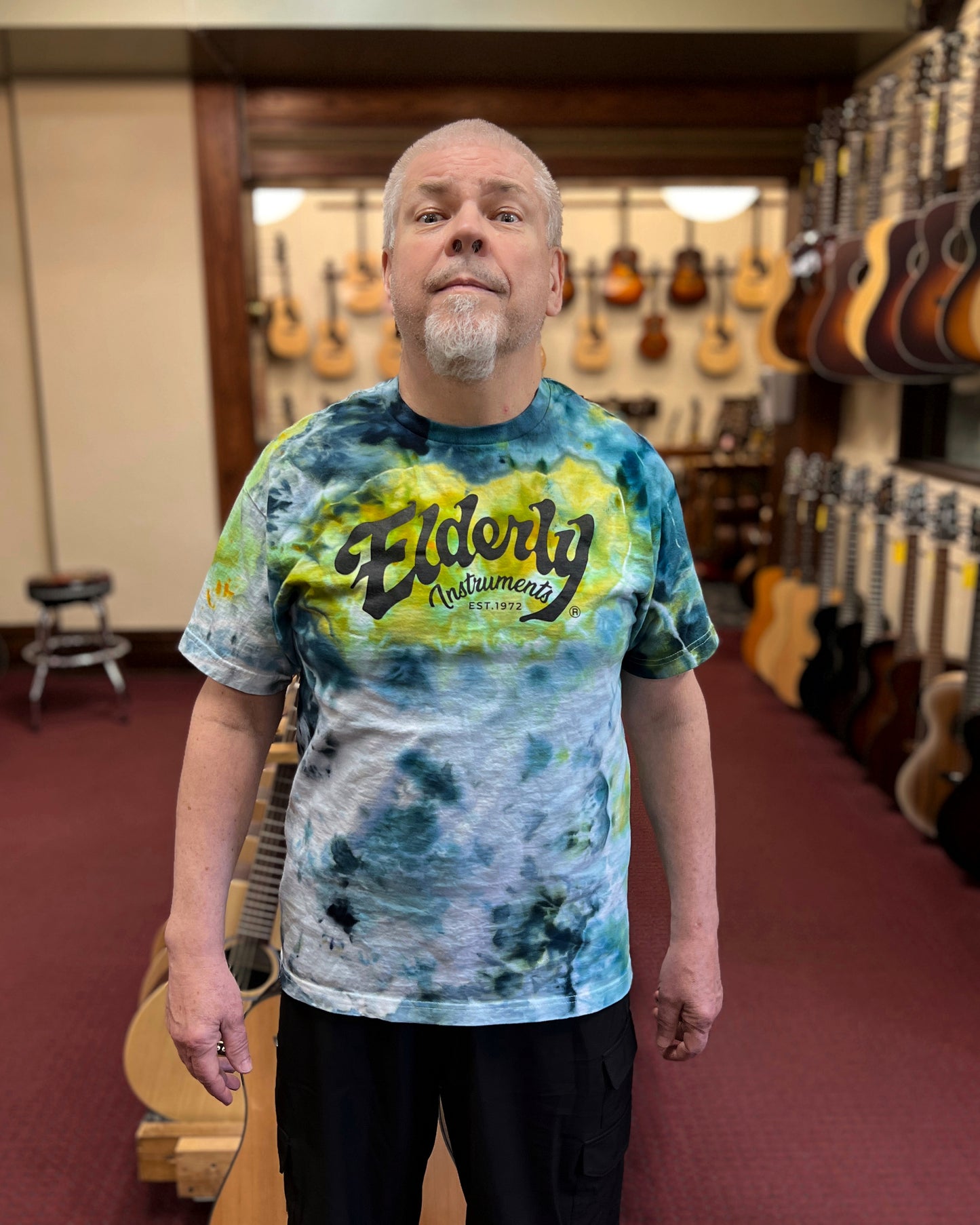 Elderly Instruments Tie-Dyed Logo Shirt, Blue & Green Geode Pattern (Various Sizes)