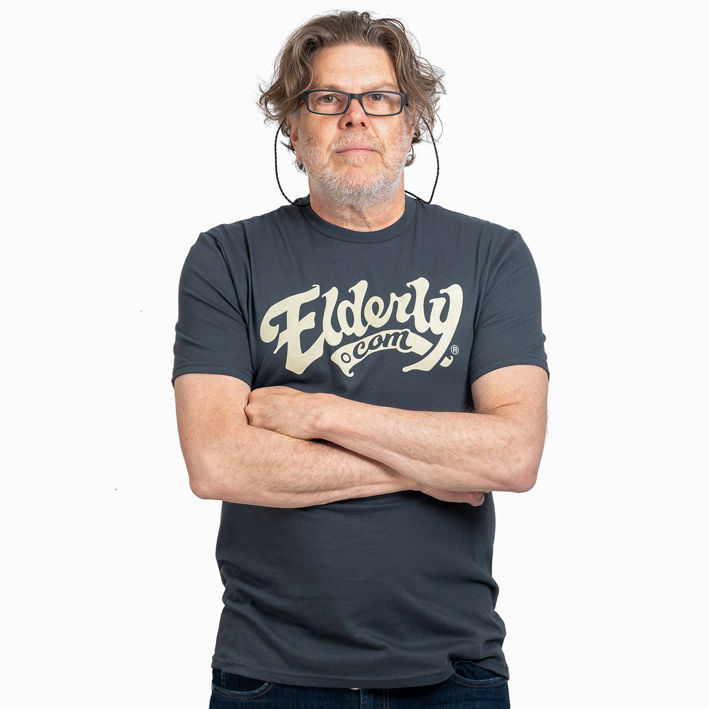 Charcoal grey shirt with our Elderly.com logo recognized the world over. These tees are crafted from 100% combed ring spun cotton for ultimate comfort. Tapered for a slimmer fit and shorter sleeves, 1x1 rib knit neck, and a tear-away label.