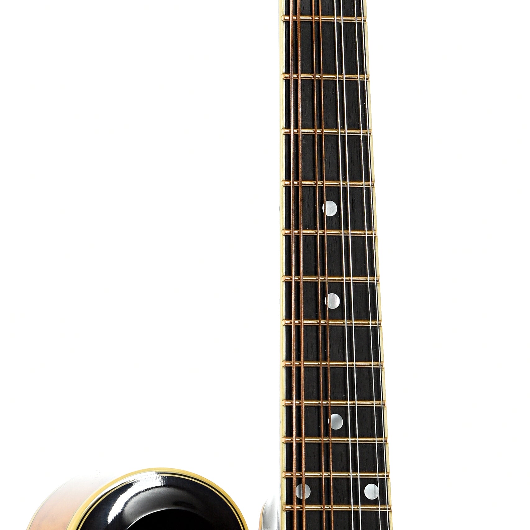 - Bound ebony fingerboard with pearl dot inlays