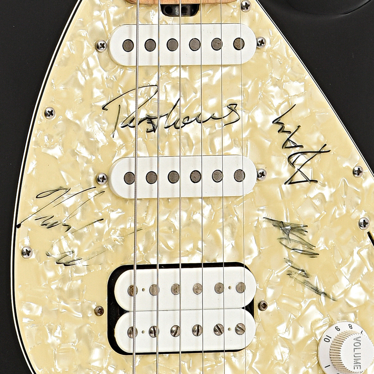 • Pearloid-b-w pickguard (appears to have been signed by band members)