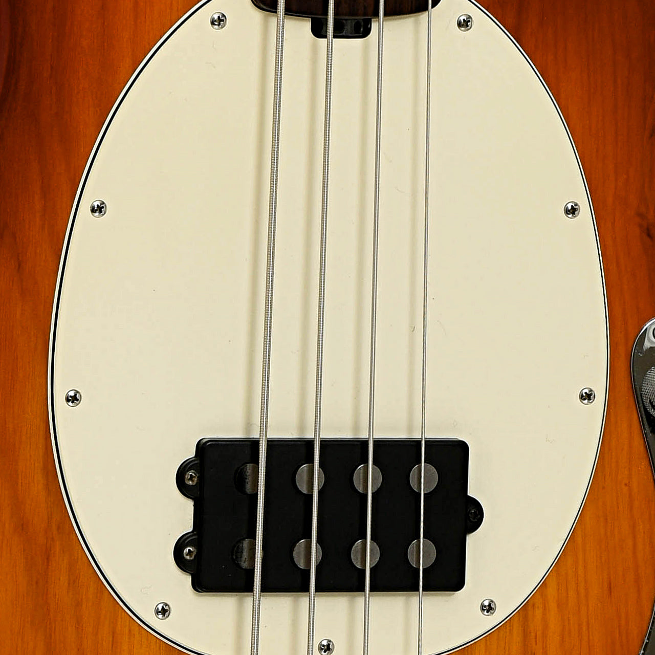 This EBMM StingRay 4 features a Honey Burst finish on ash body, and a rosewood fingerboard on a 6-bolt maple neck. Equipped with a single humbucking pickup with 3-band EQ controls, top-loading bridge, and open-gear tuners. Big thumping sound! Original thermoplastic hard shell case. Made in California, USA.