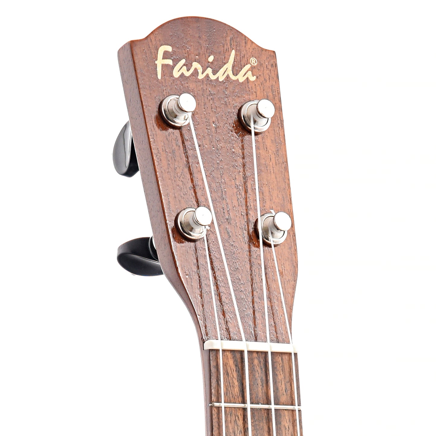 We have a limited number of prototype Farida ukuleles available at reduced prices. They are identical to the current models except the peghead shape and logo are different. Great values at righteous prices. Get them while they last! An impressive, high-quality uke with a very fine sound. Features a lightly constructed body of all solid acacia with a mahogany neck and acacia fingerboard and bridge. Nice appointments include a 3-ring wood and faux abalone rosette, friction tuners, and a nitrocellulose lacquer finish.