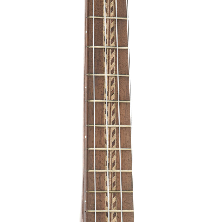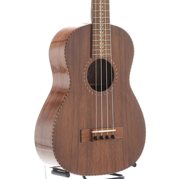 An impressive tenor ukulele with high end appointments and terrific sound — a tremendous value! Features a lightly constructed body of all solid koa with a mahogany neck. Premium appointments include “rope” style binding, koa bridge and fingerboard, planetary geared tuners, handsome wood marquetry, and a thin nitrocellulose lacquer finish. A truly remarkable instrument.