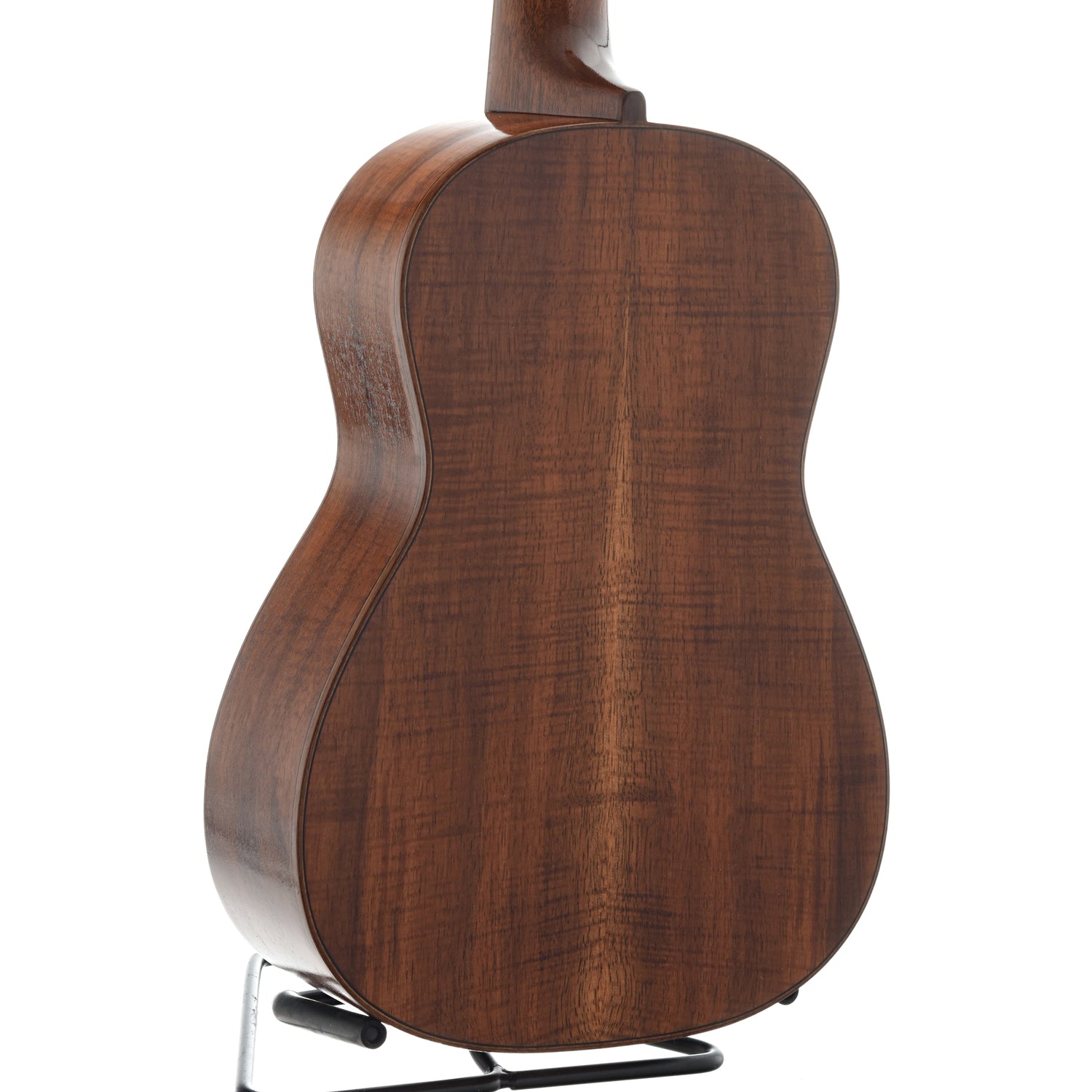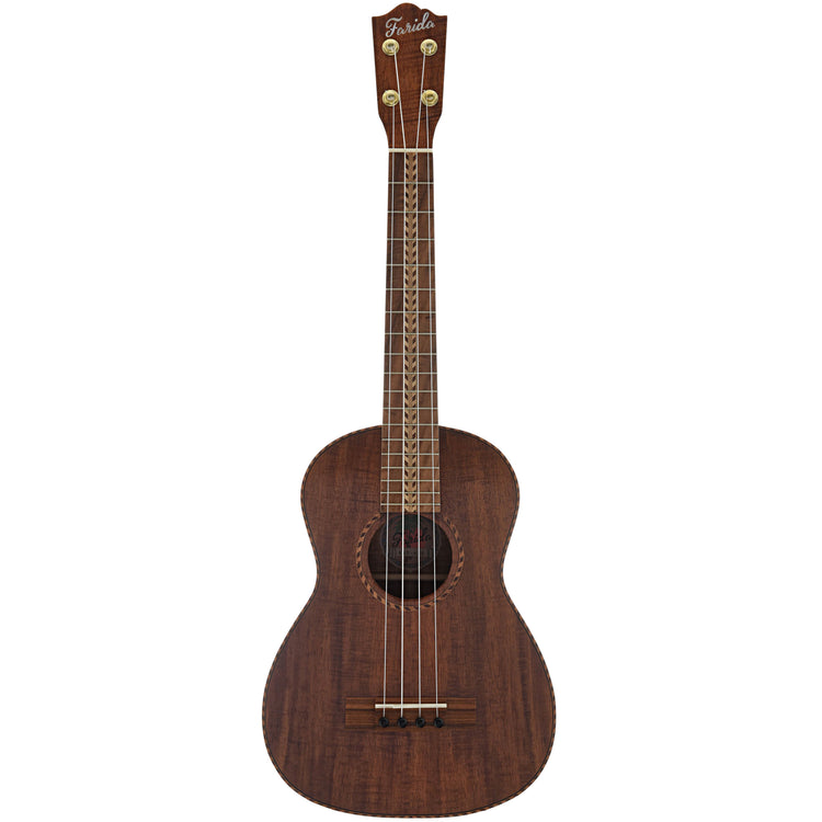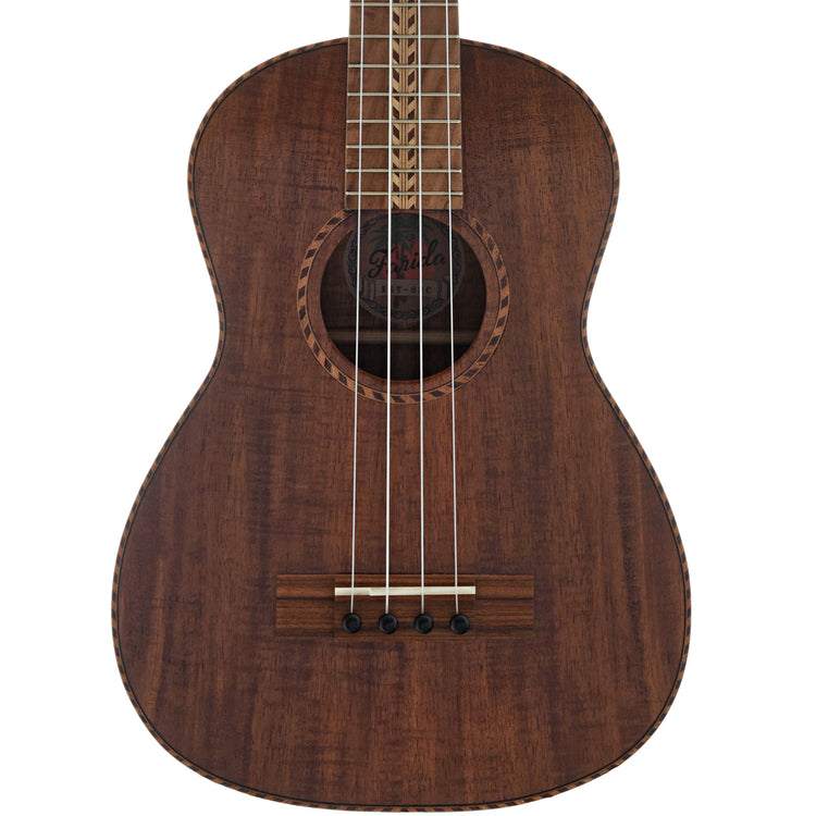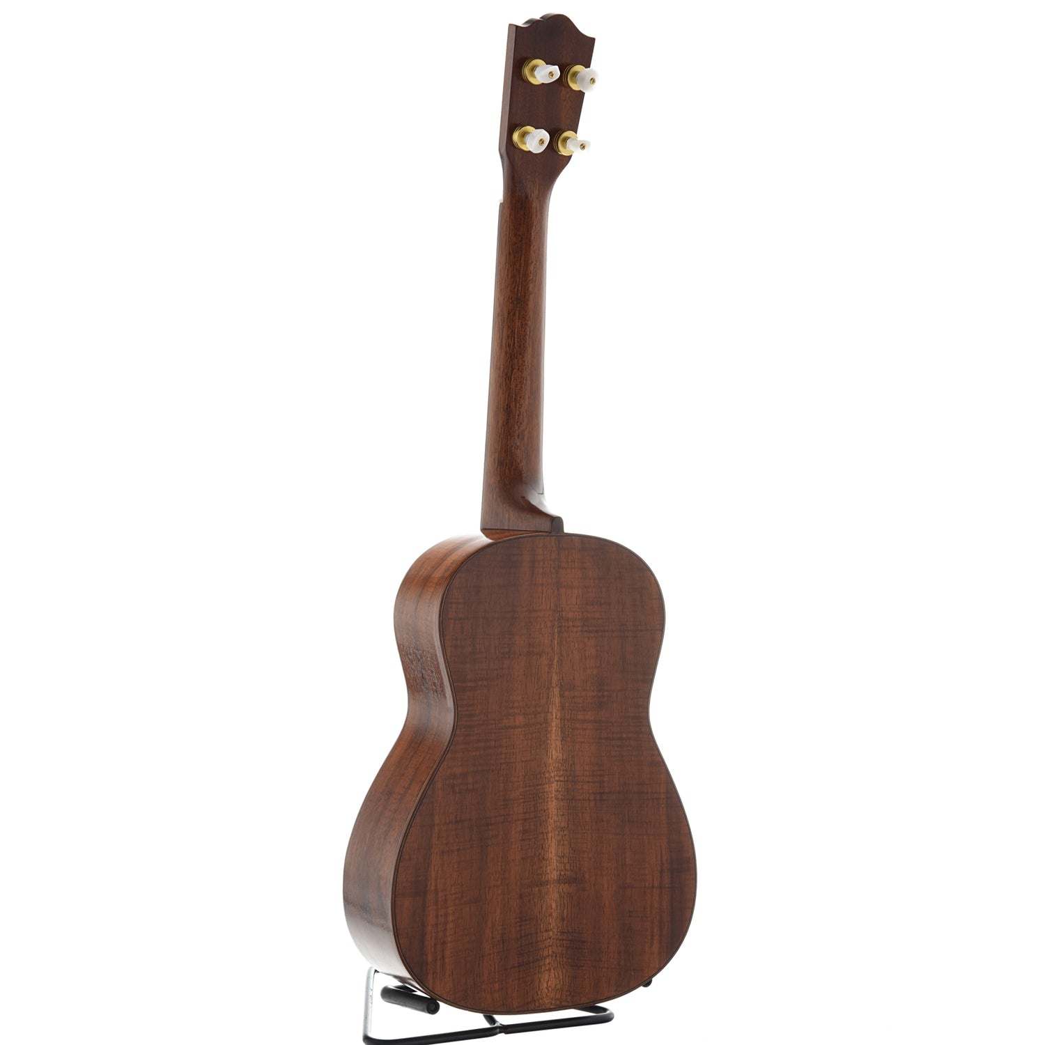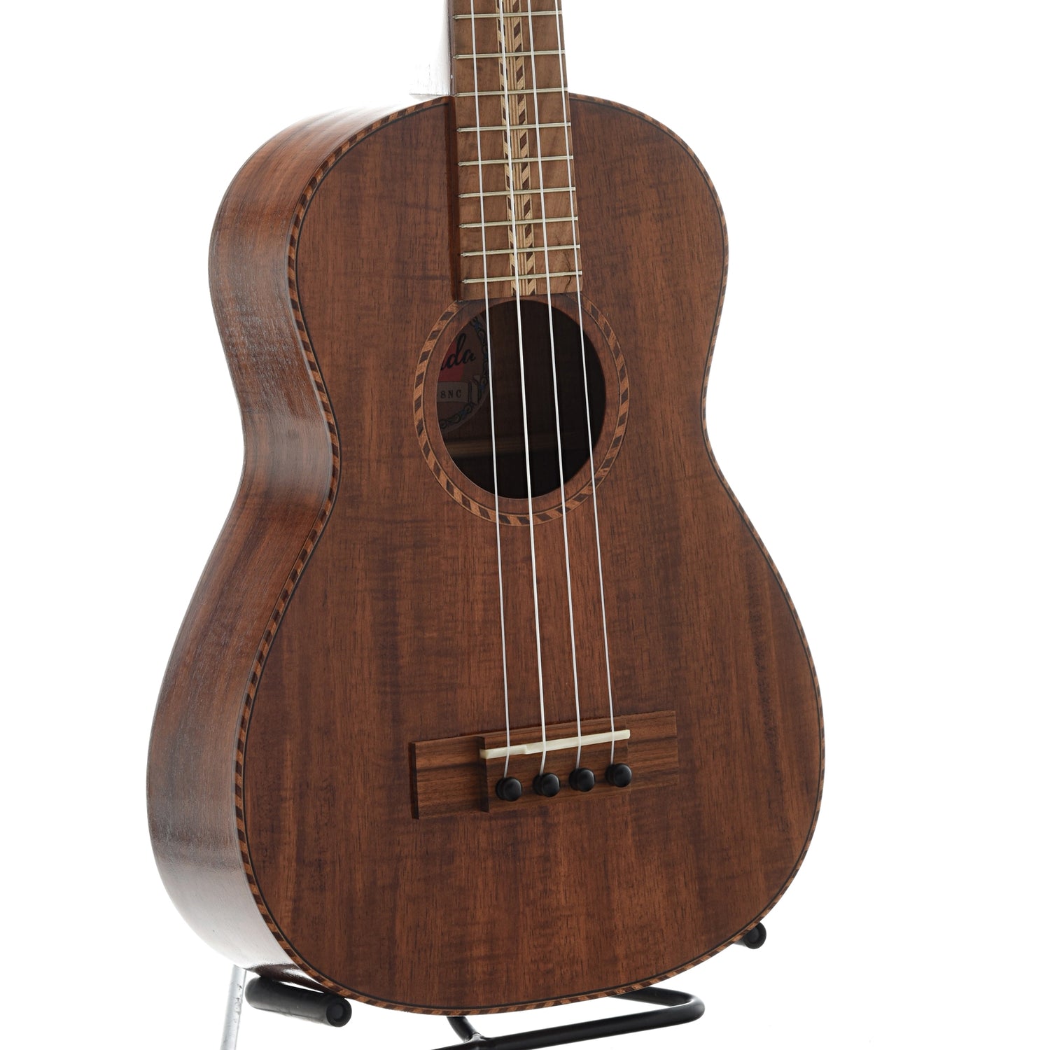 An impressive tenor ukulele with high end appointments and terrific sound, this instrument compares favorably to ukes costing twice as much. Features a lightly constructed body of highly flamed, all solid koa and a mahogany neck. Premium details include "rope" style binding and rosette, koa bridge and fingerboard, fancy wood marquetry, planetary geared tuners, and a thin nitrocellulose lacquer finish. A truly remarkable instrument.