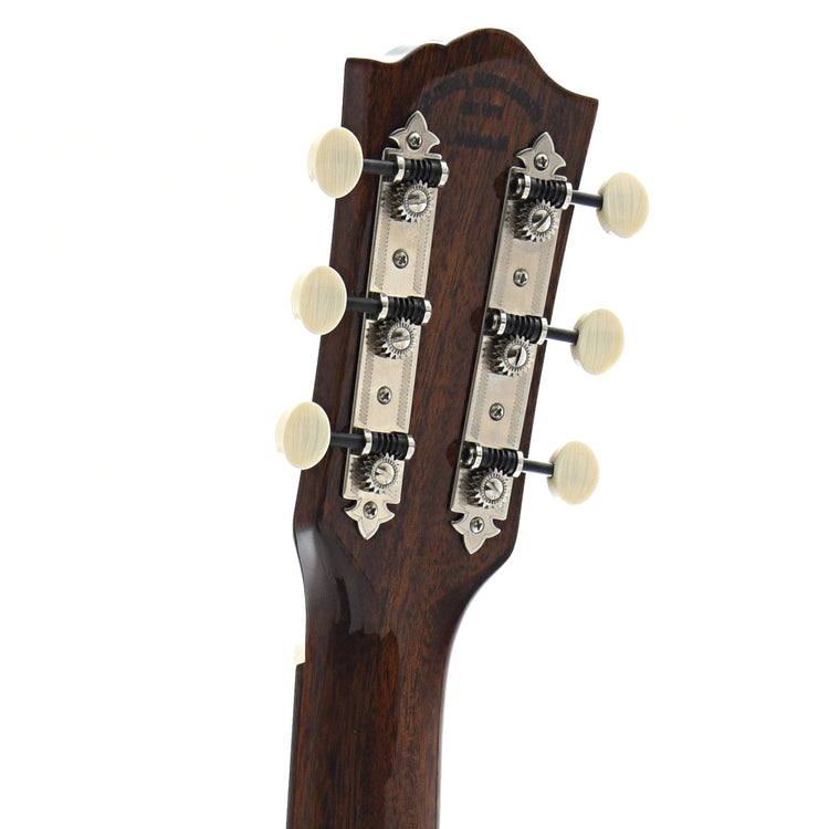 - Vintage-style three-on-a-plate open-geared tuners with ivoroid buttons