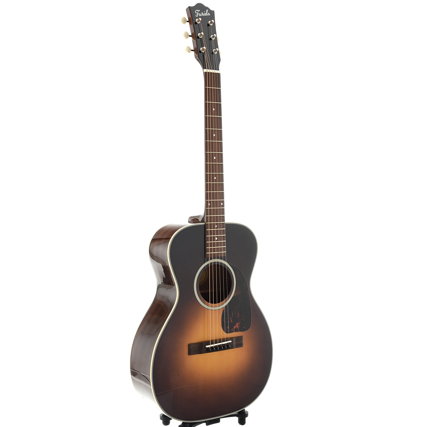 The OT-10 series offers the fit and finish you’ve come to expect from Farida guitars in an intimate parlor instrument. The single-0 size OT-15 pairs a solid sunburst spruce top with solid mahogany back and sides for clear, balanced tone. Vintage-inspired appointments include a tortoise plastic pickguard, ivory ABS binding, and three-on-a-plate open geared tuners with ivoroid buttons.
