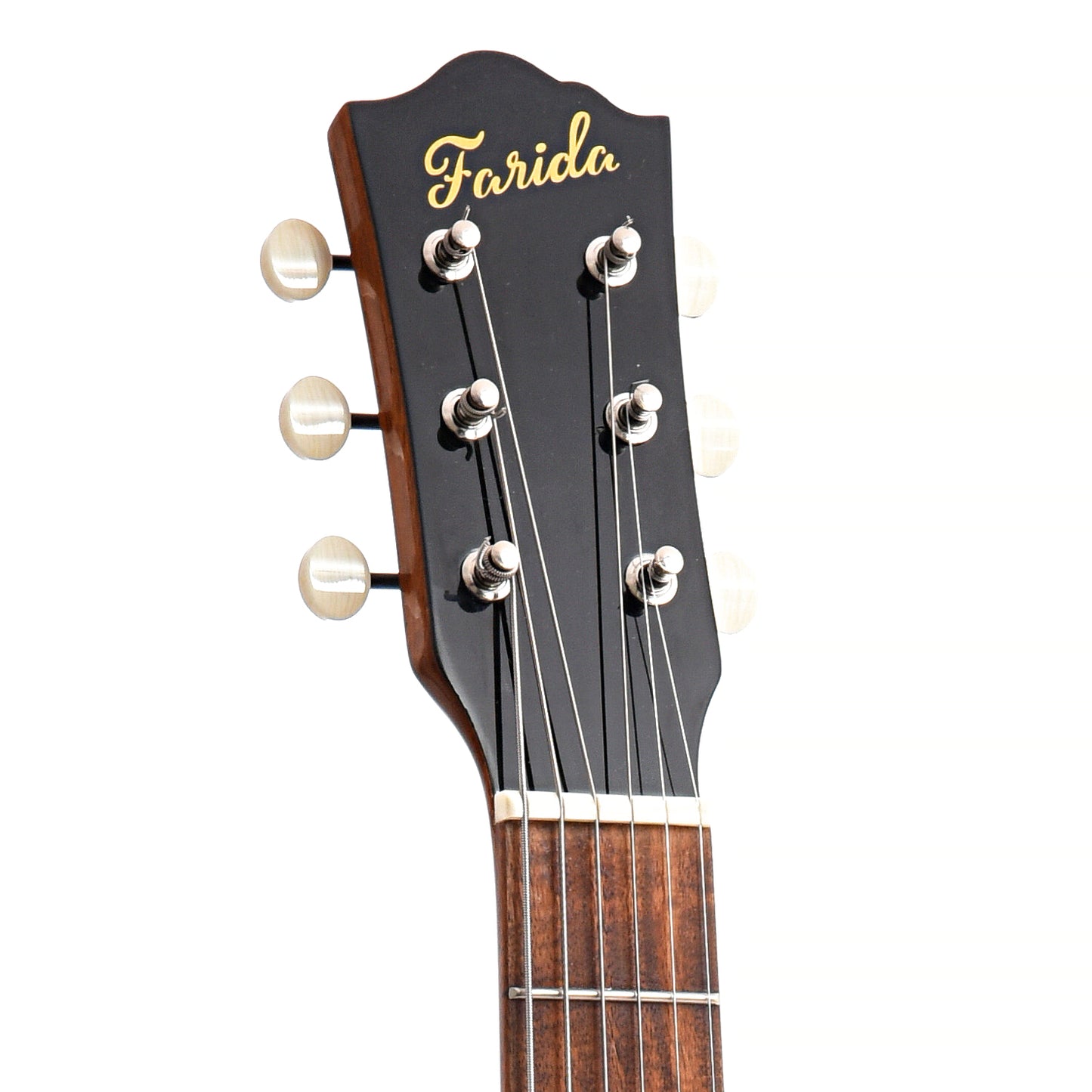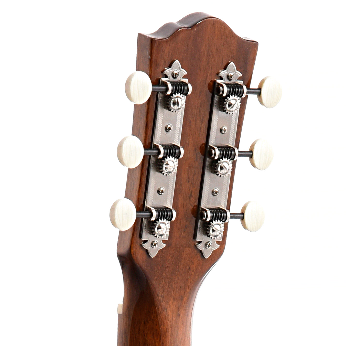 - Vintage-style three-on-a-plate open-geared tuners with ivoroid buttons