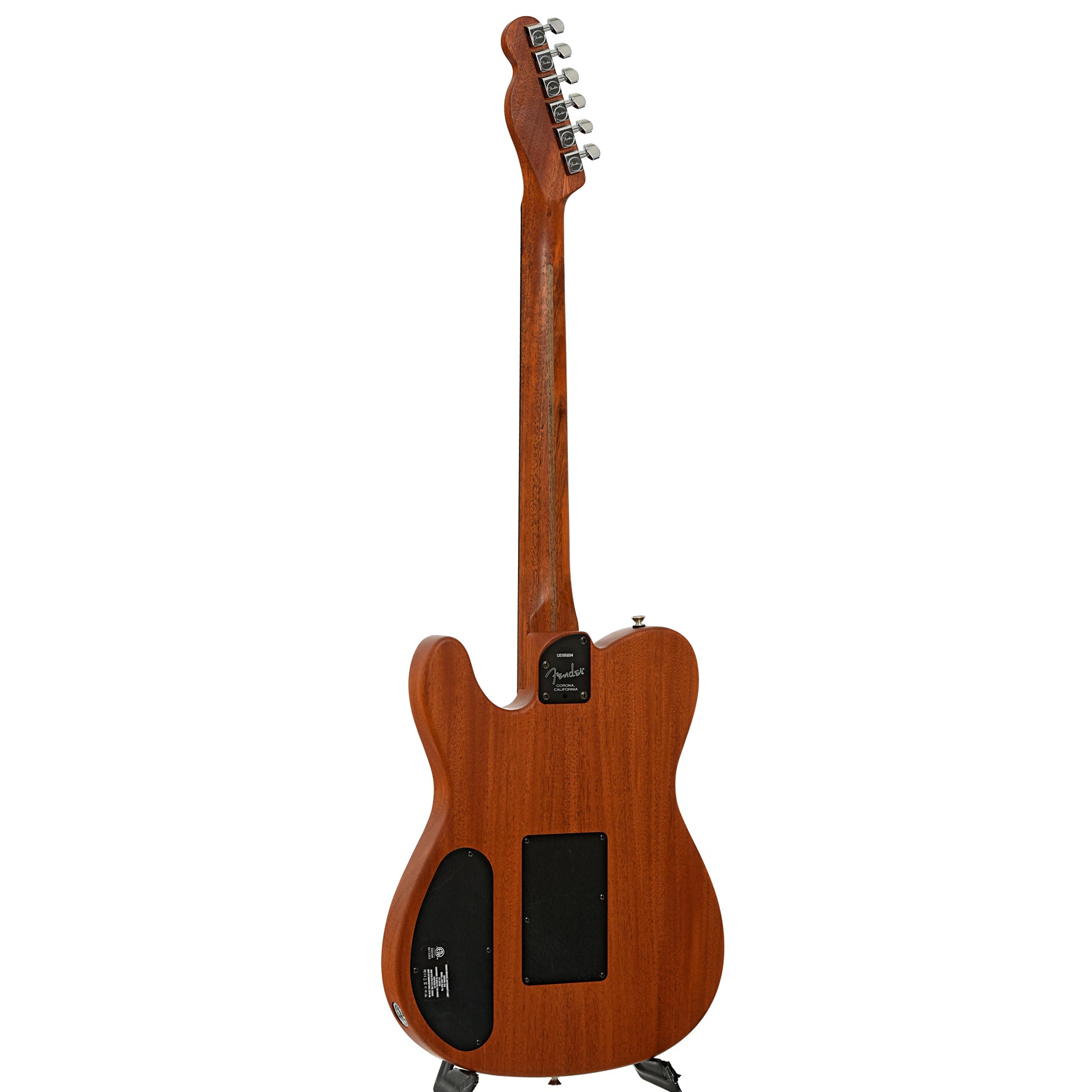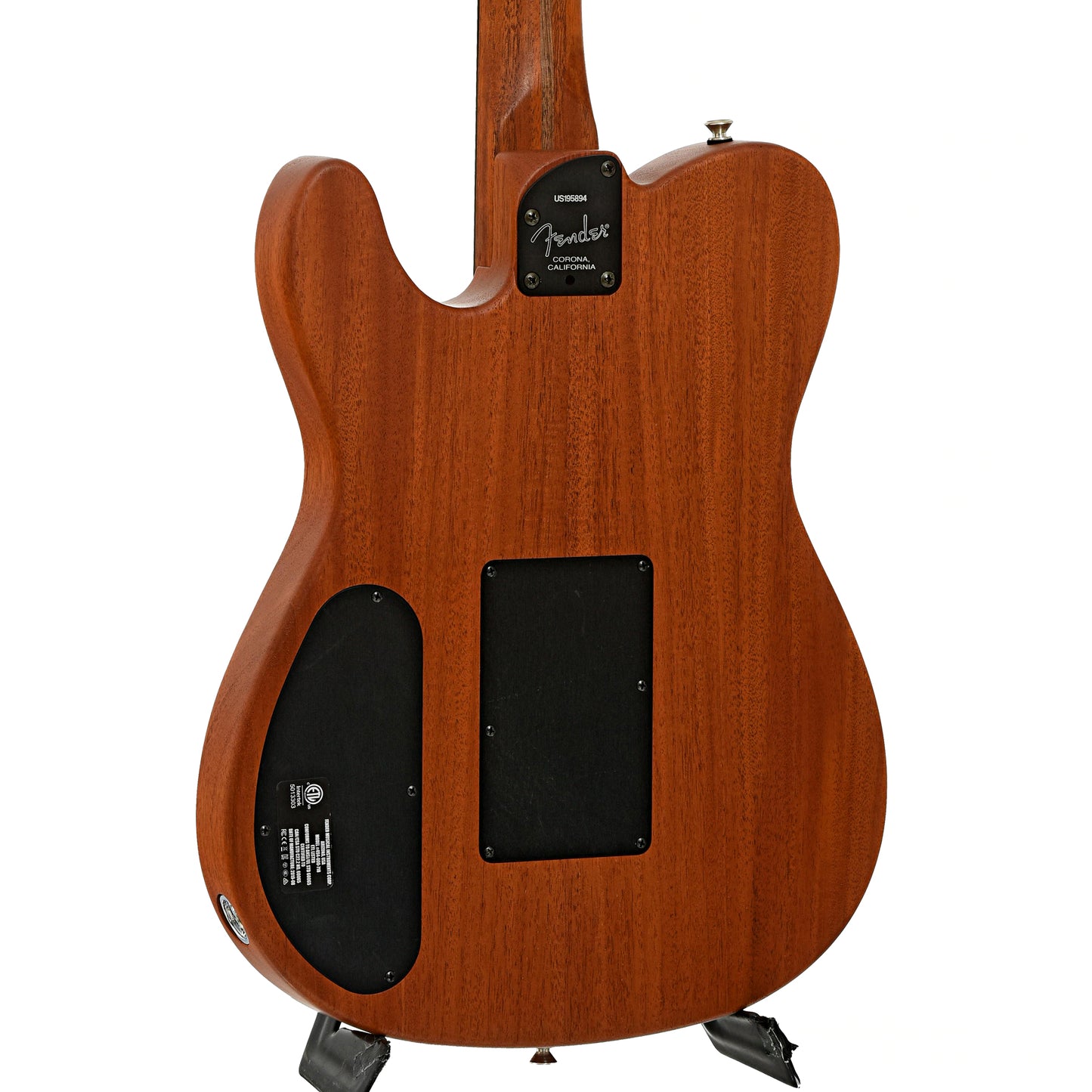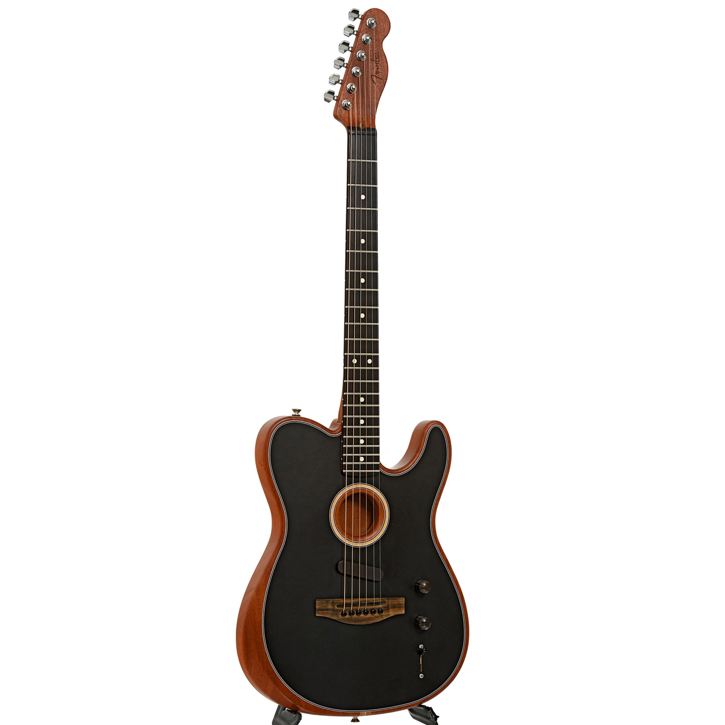 This versatile Acoustasonic Telecaster features a mahogany body and neck, soundhole design, black top finish, and an ebony fingerboard. Equipped with three pickups—a piezo, body sensor, and magnetic pickup—offering a wide range of tones from acoustic to rock. Includes gigbag. Made in the USA. On consignment.