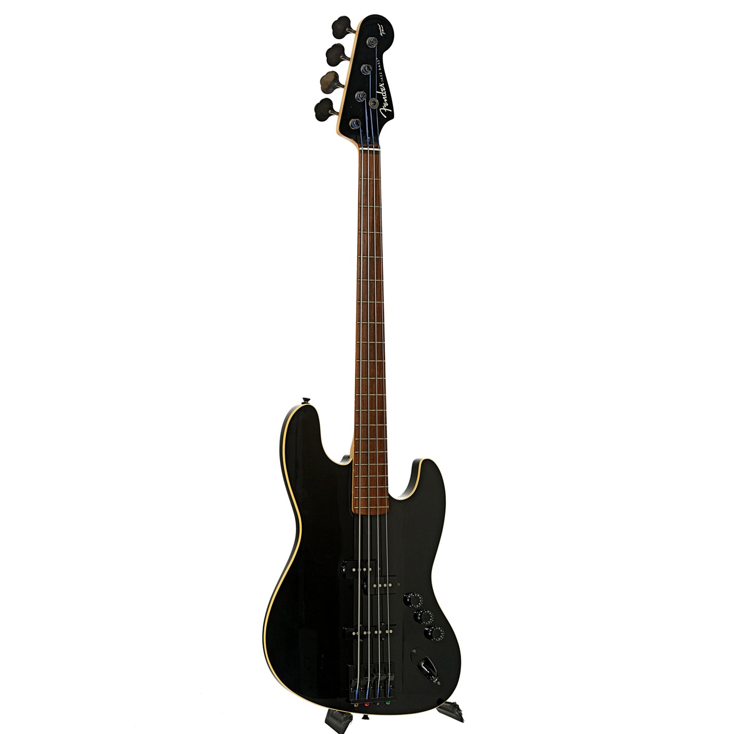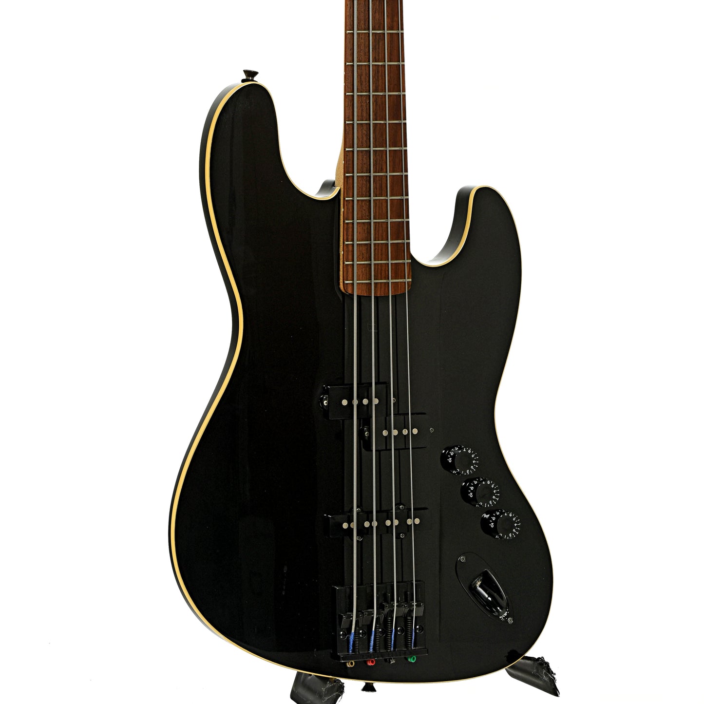 This gloss black Aerodyne is a modern take on the famed Jazz Bass and features a bound top, smoked chrome hardware, a rosewood fingerboard on a bolt-on maple neck. Equipped with split-coil and JB single-coil pickups, top-loading bridge, and Strat-style output jack. Original molded hard shell case. Crafted in Japan.