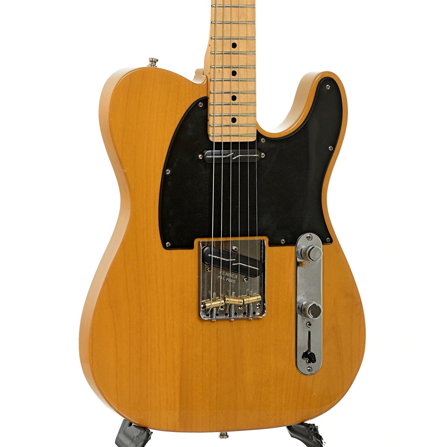 Versatile Tele tones, great looks and features, including a vintage Butterscotch Blonde finish and a 1-piece maple neck. A pair of Fralin split-blade neck pickups installed. Includes the classic ashtray bridge with 3 brass barrel saddles, and vintage-style tuners. Fender molded hardshell case. Made in USA.