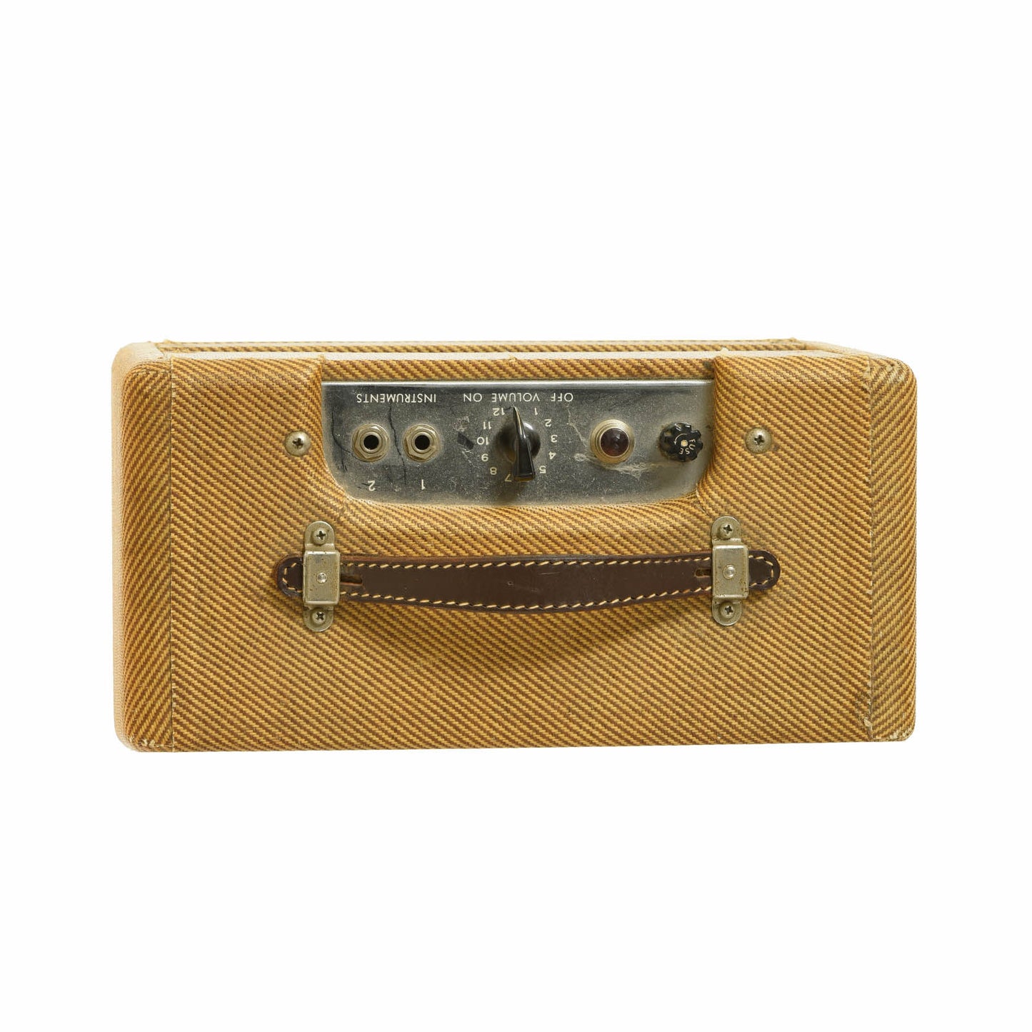 Nice example of a Fender 1X8 narrow panel combo. It has a 1X8 Oxford speaker (dated 42nd week of '56), 5 watts of power and an 5F1 circuit.