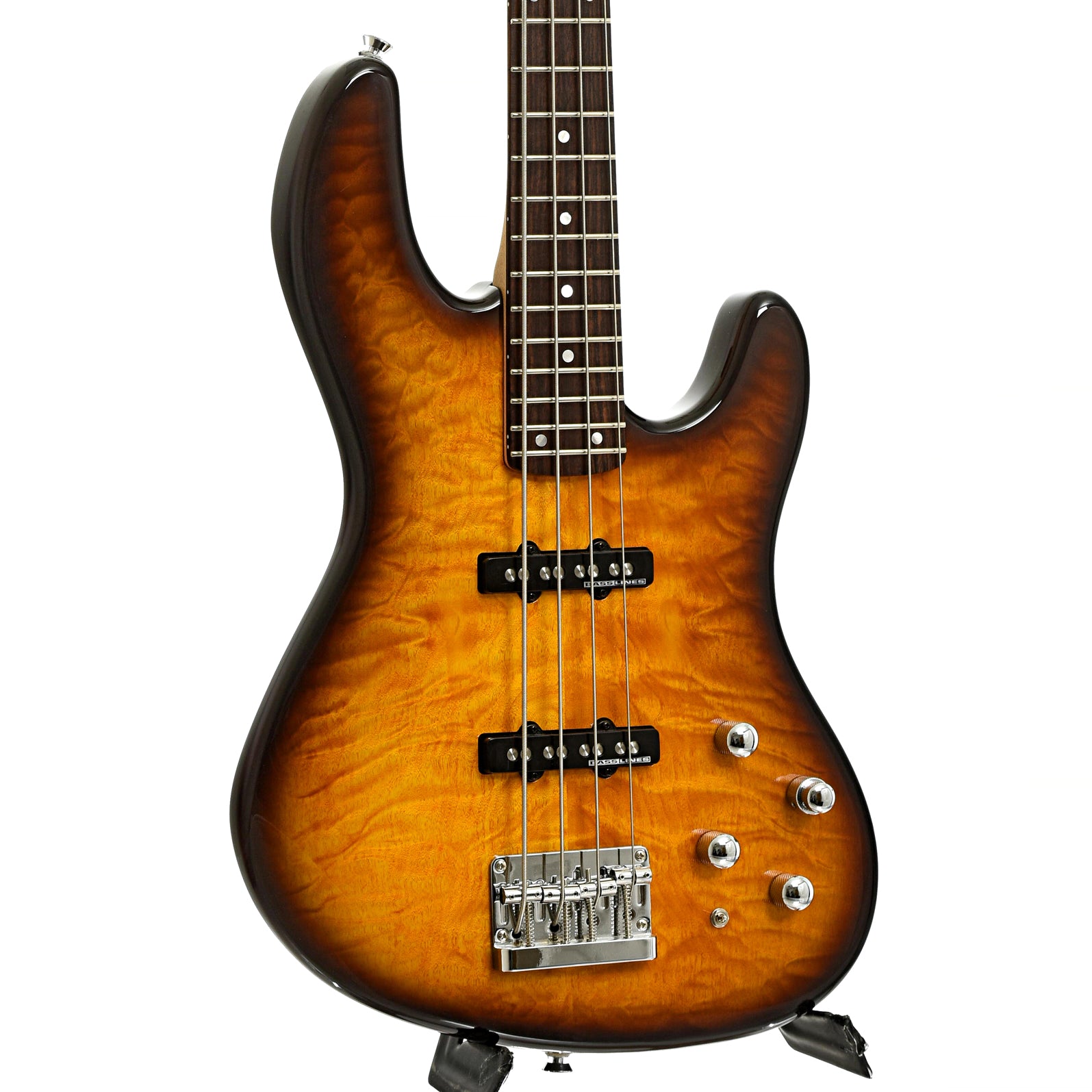 Deluxe features on this snazzy Jazz Bass include a 24-fret rosewood fingerboard, gloss Tobacco Sunburst finish on quilted maple top. Equipped with a pair of Seymour Duncan Basslines JB-style pickups, active electronics, pan control, 3-band EQ and active/passive switch. Gigbag. Made in Korea.