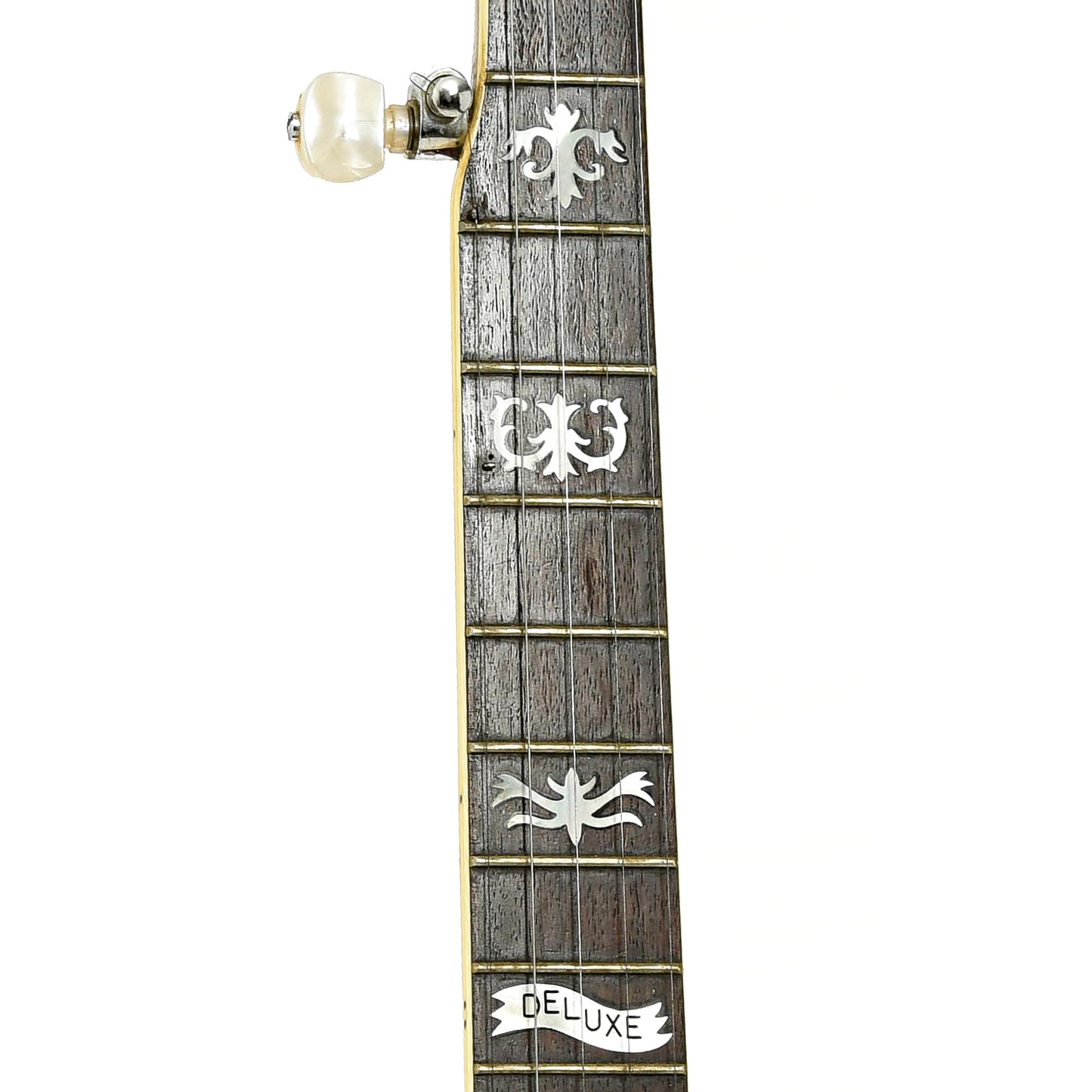 - Fancy pearl inlays, "DELUXE" banner @ 12 fret