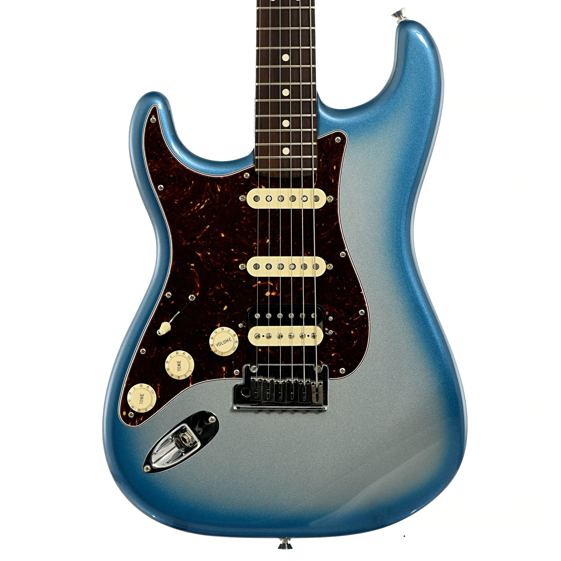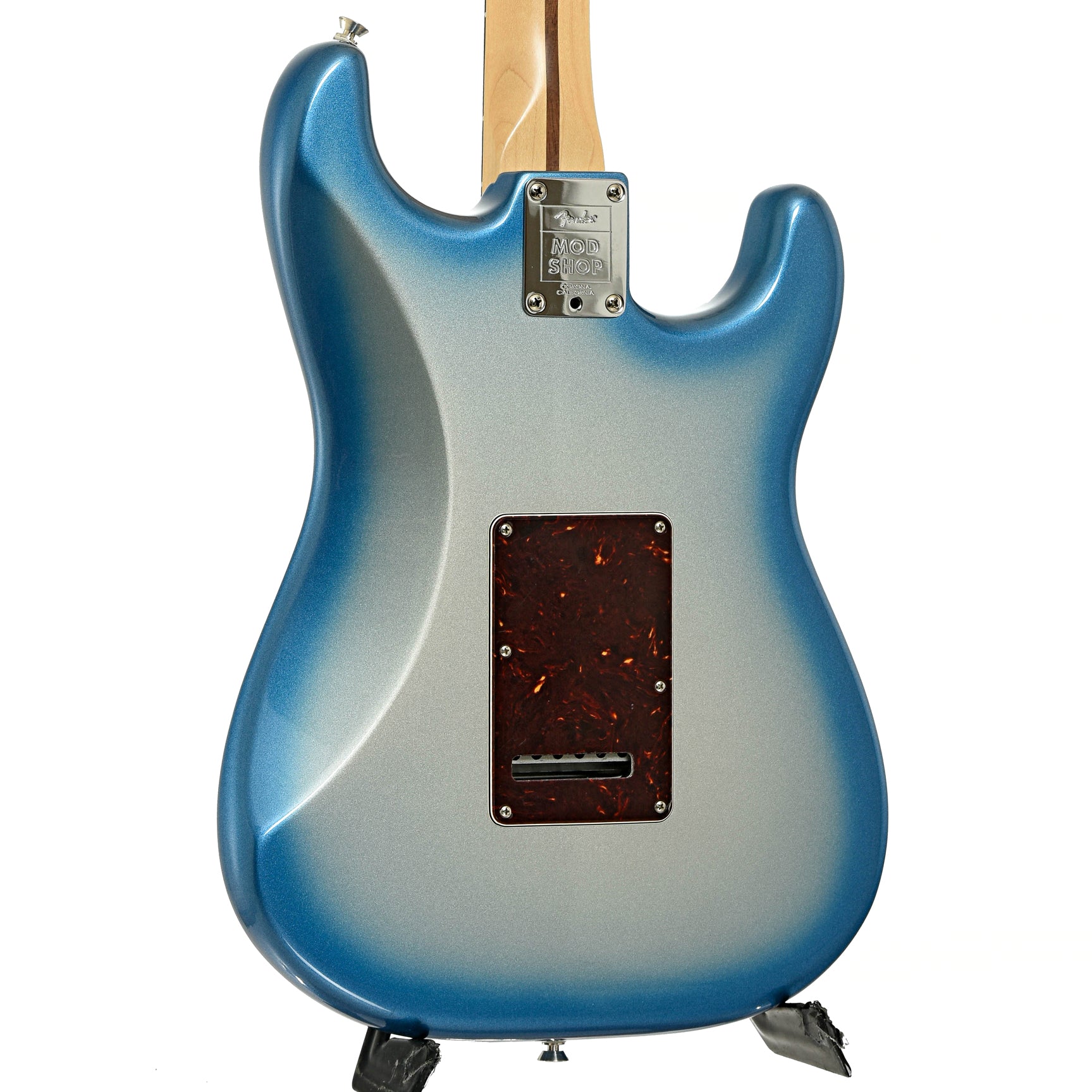 Quite the combination of features on this lefty Modshop Strat, including a striking Skyburst Metallic finish, and a rosewood fingerboard on a 4-bolt maple neck. Equipped with a HSS pickup configuration, 2-point tremolo bridge, and locking tuners. Original molded hard shell case. Made in USA. On consignment.