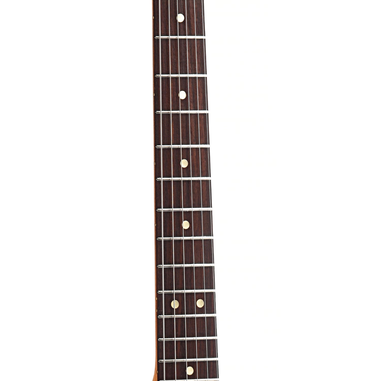 - Replacement single coil pickups (bridge pickup is an import, neck is a Fender Strat pickup)