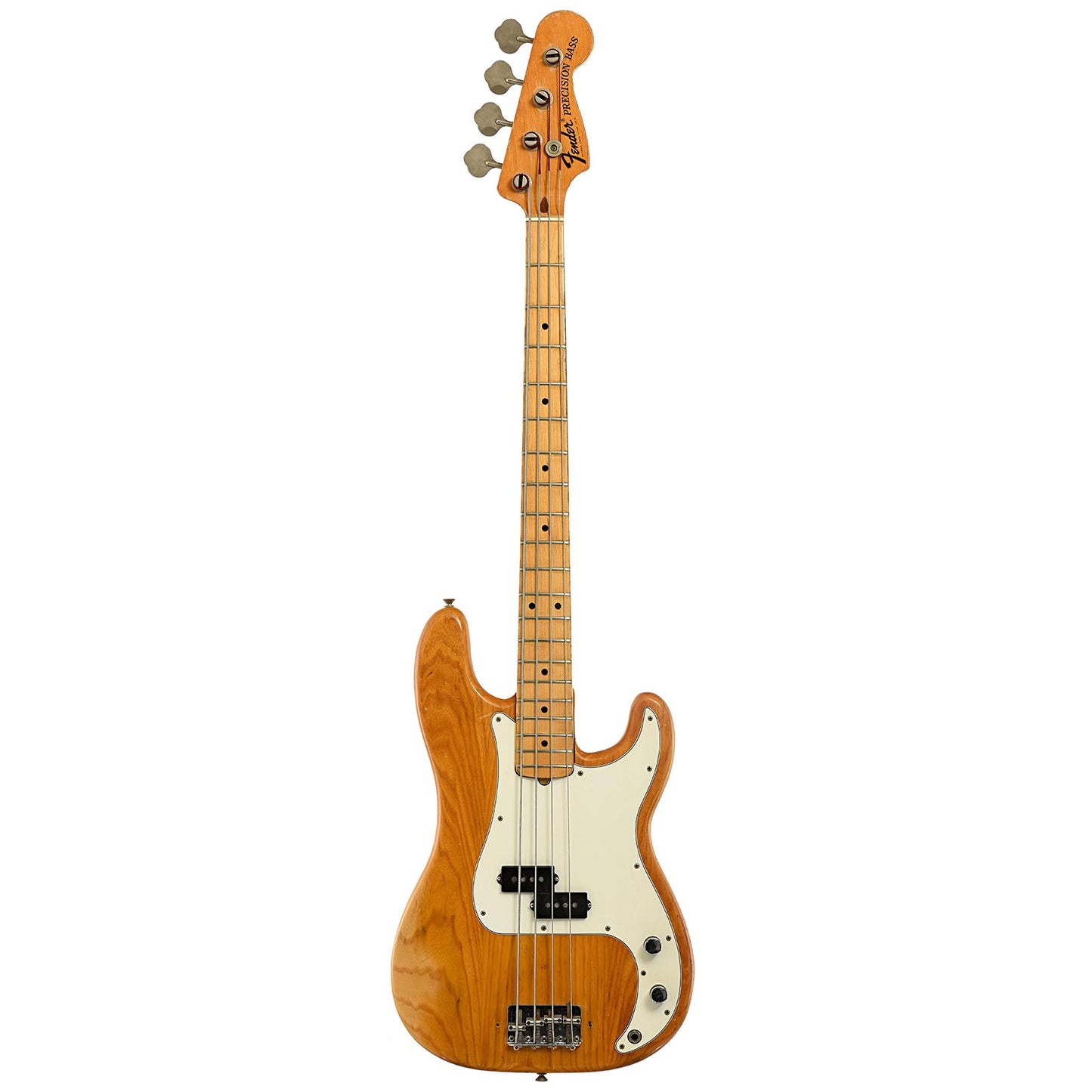 This 70s P Bass has been played over the years and is ready for more! Features include a natural finish on an ash body and a one-piece maple neck. It's equipped with the original split-coil pickup, open-gear tuners, and top-loading bridge. A newer pickguard has been installed. Original rectangular hard shell case. Made in USA.