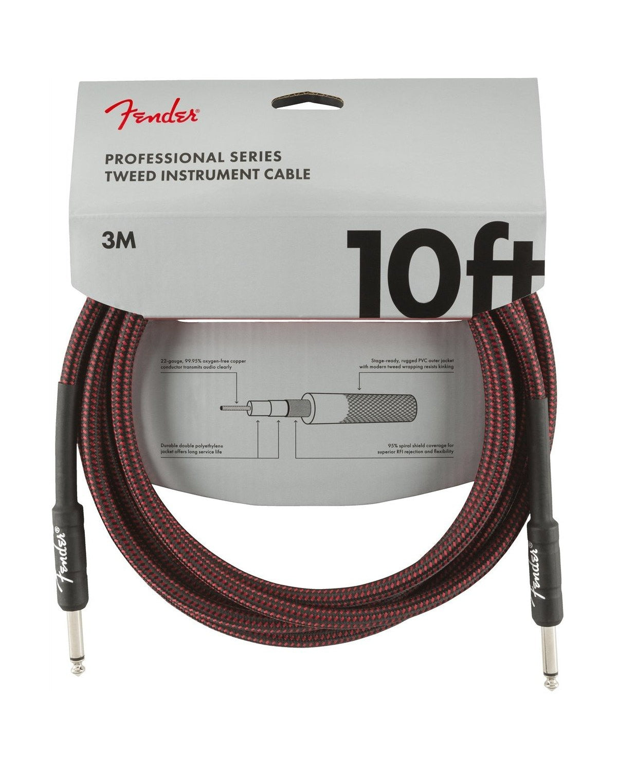 Fender Professional Series Instrument Cable, 10', Red Tweed