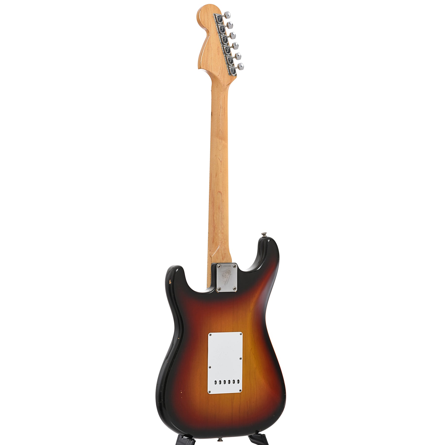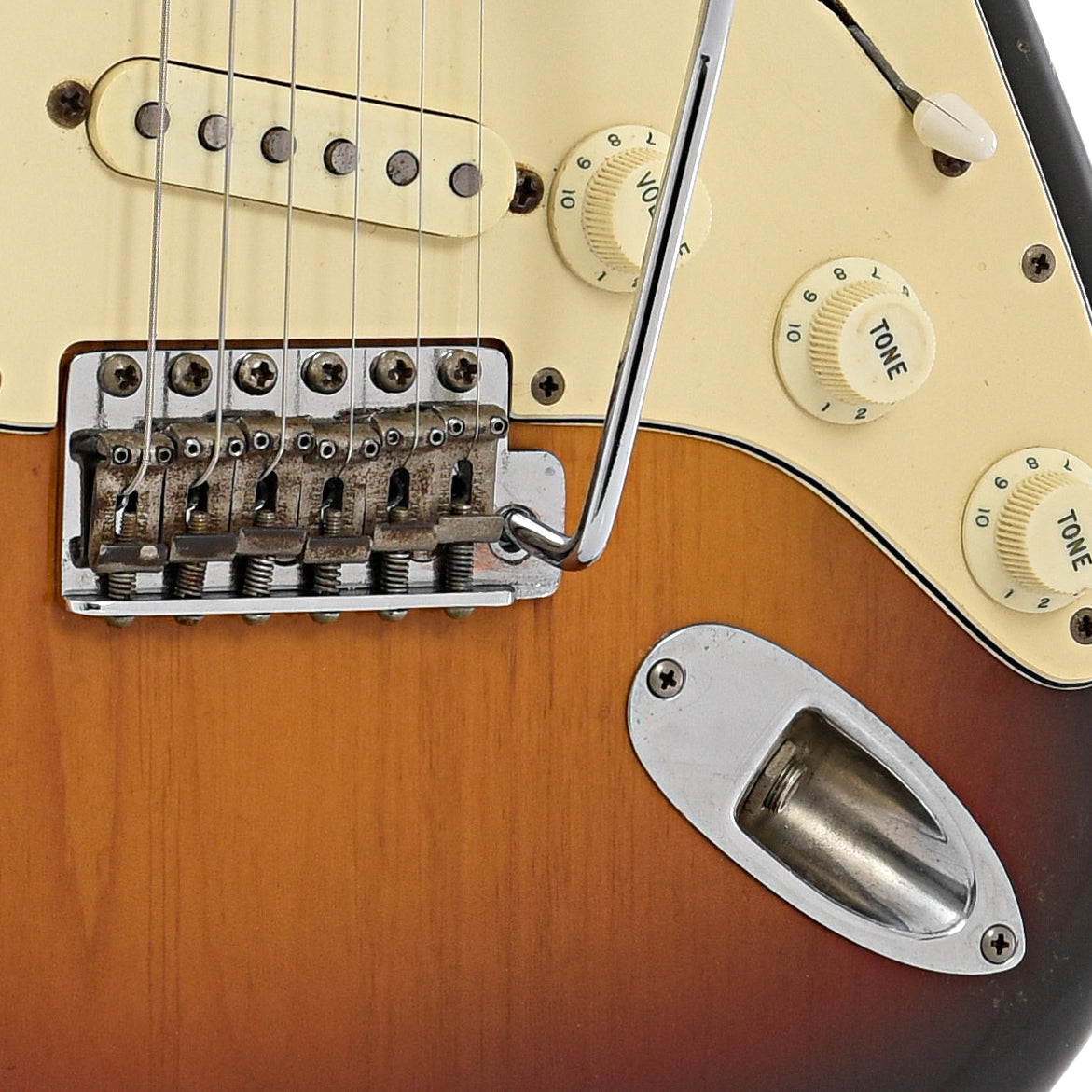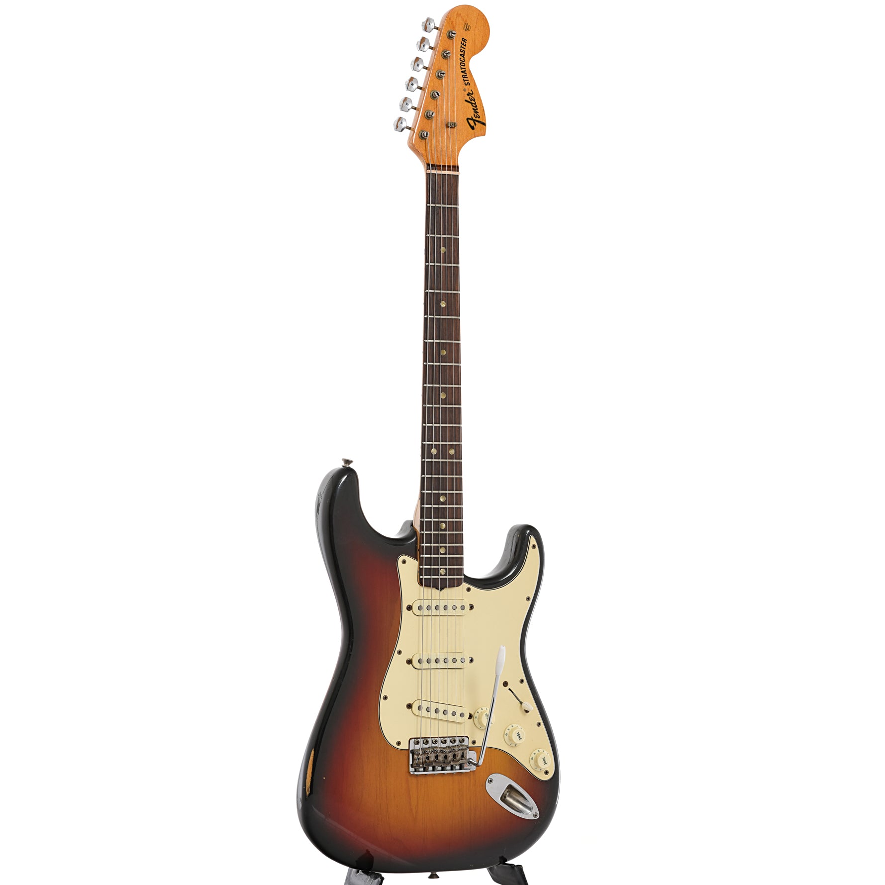 This 1971 Fender Stratocaster sports a sunburst finish on an alder body with a 4-bolt maple neck (dated 22 AUG 71B) and a rosewood fretboard. It had a 5-way switch installed and a refret. The original tremolo has been repaired by our shop with a new bar. Original tuners, pickguard, and knobs. Includes the original hard case.