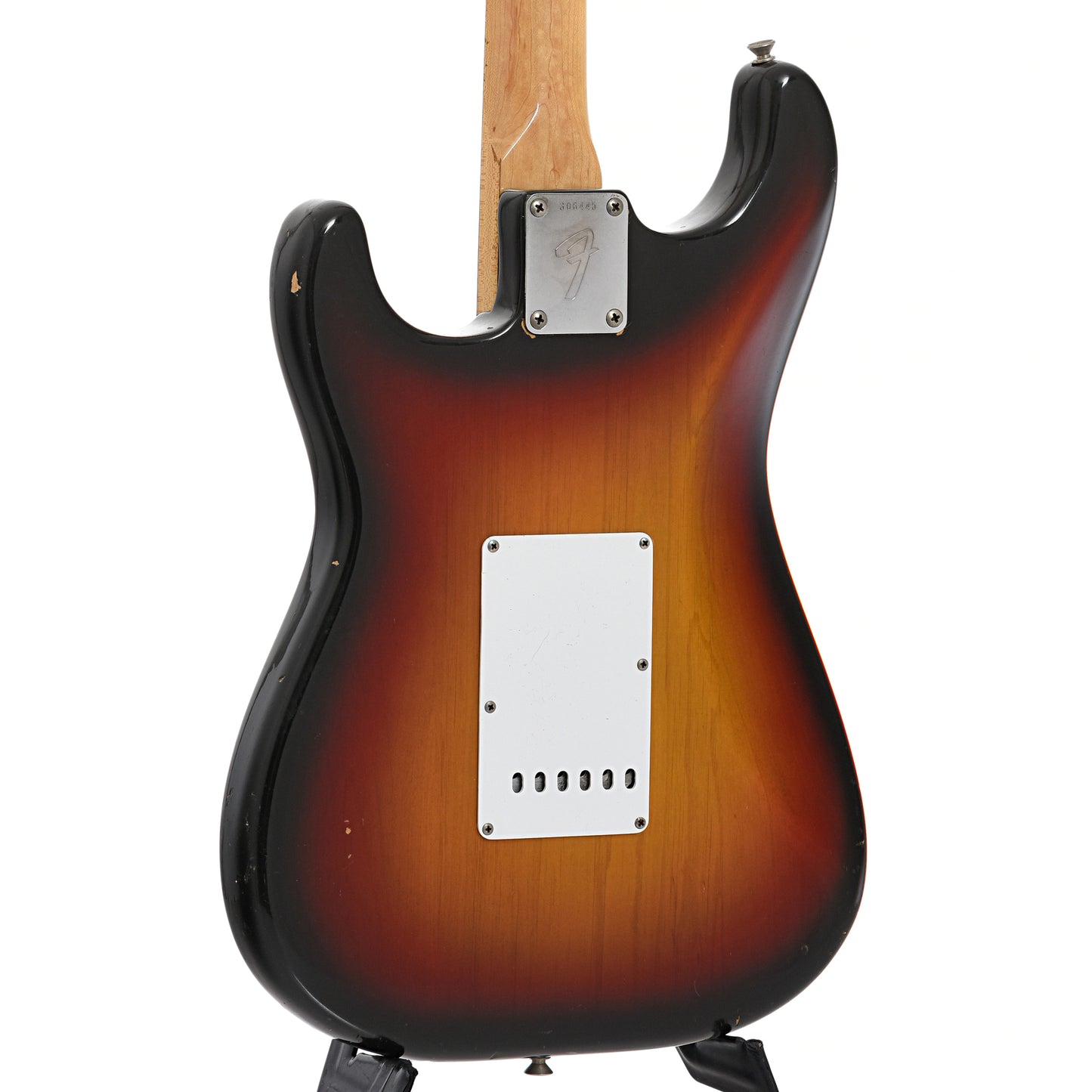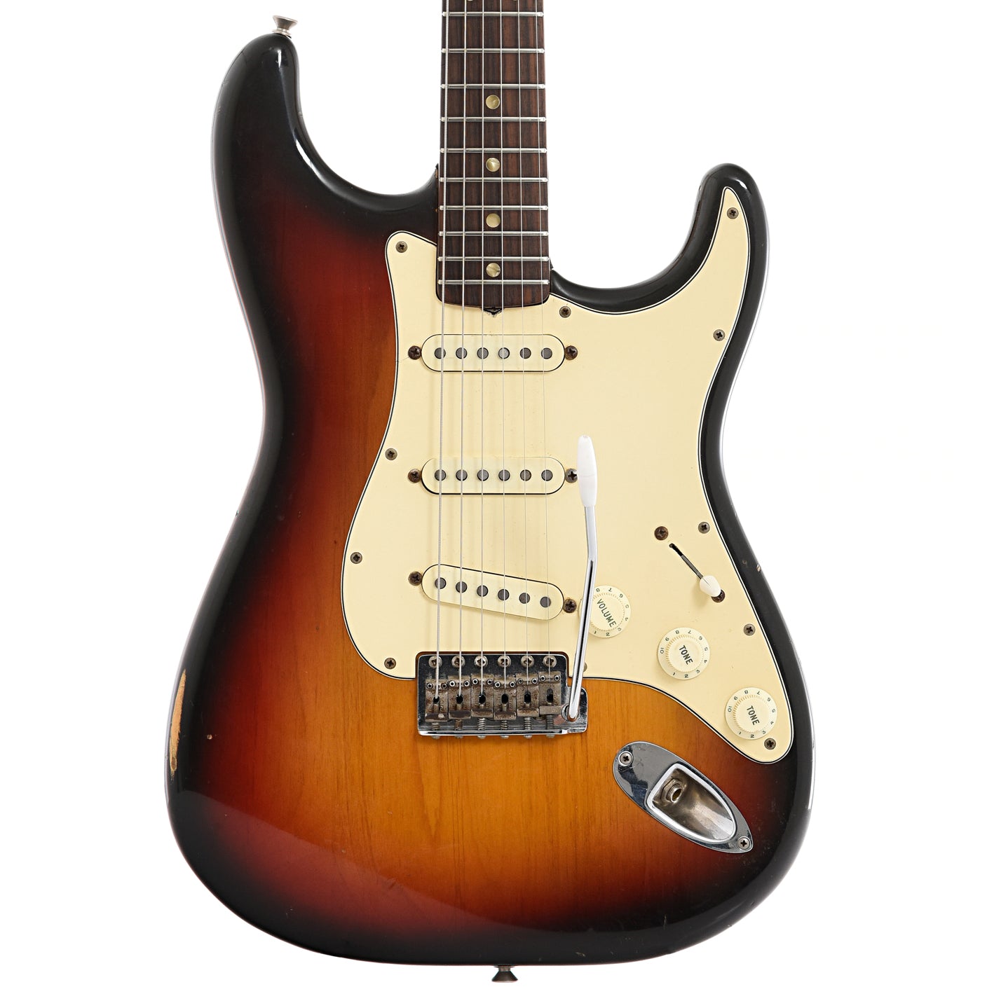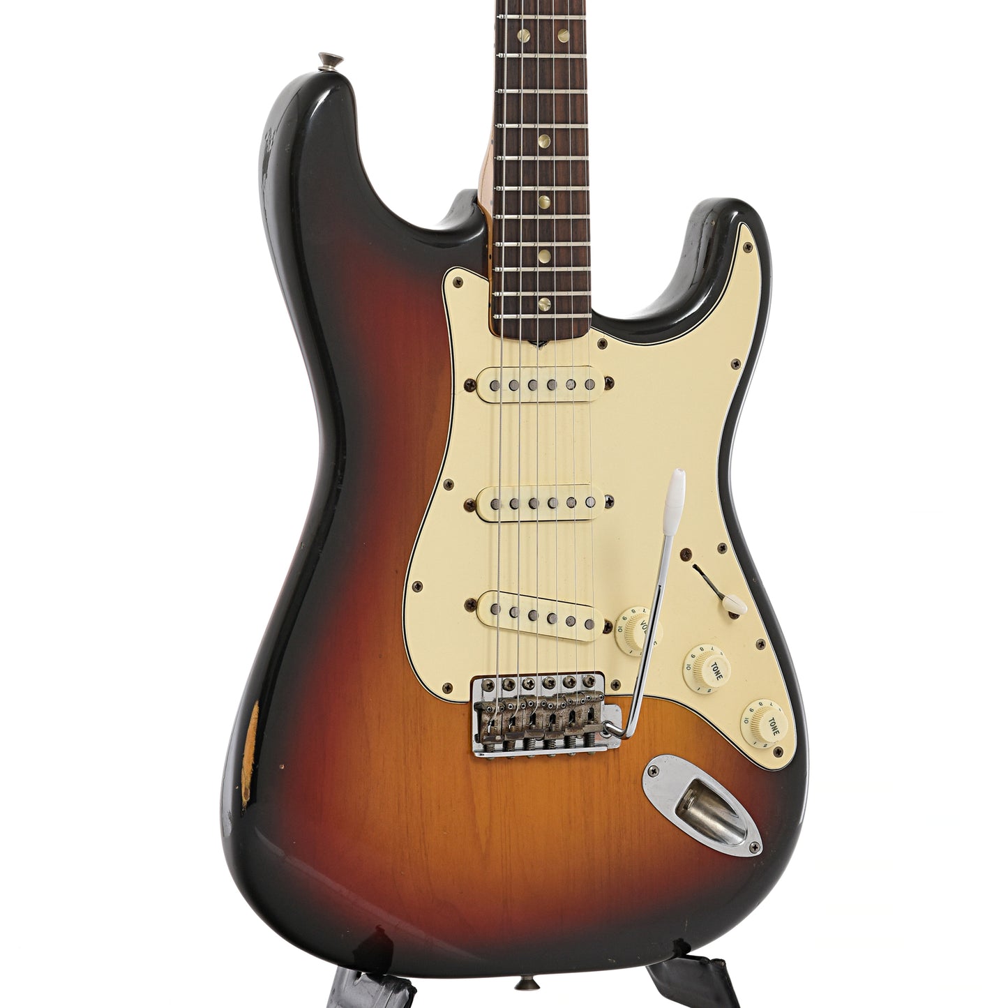 This 1971 Fender Stratocaster sports a sunburst finish on an alder body with a 4-bolt maple neck (dated 22 AUG 71B) and a rosewood fretboard. It had a 5-way switch installed and a refret. The original tremolo has been repaired by our shop with a new bar. Original tuners, pickguard, and knobs. Includes the original hard case.