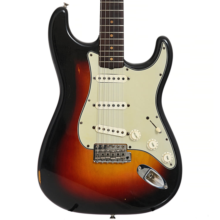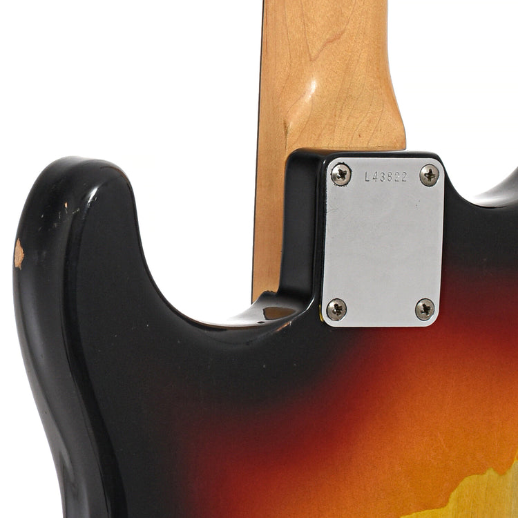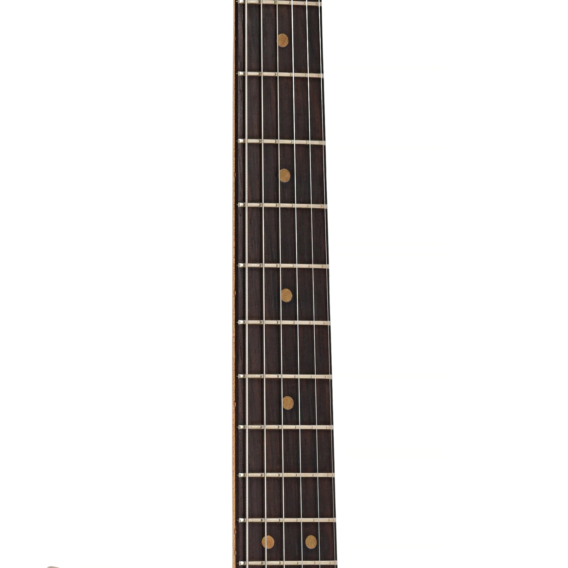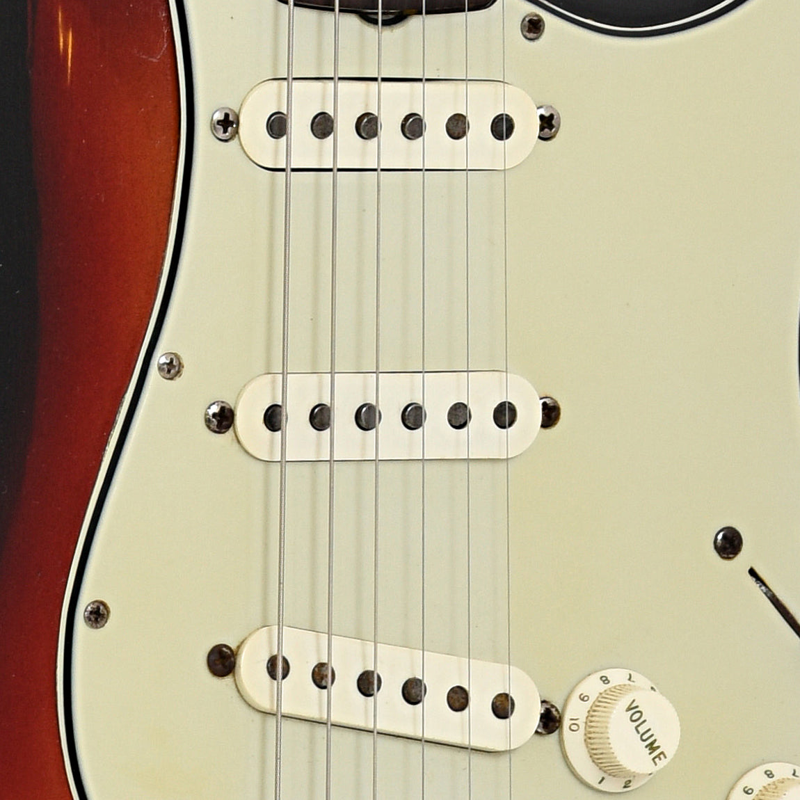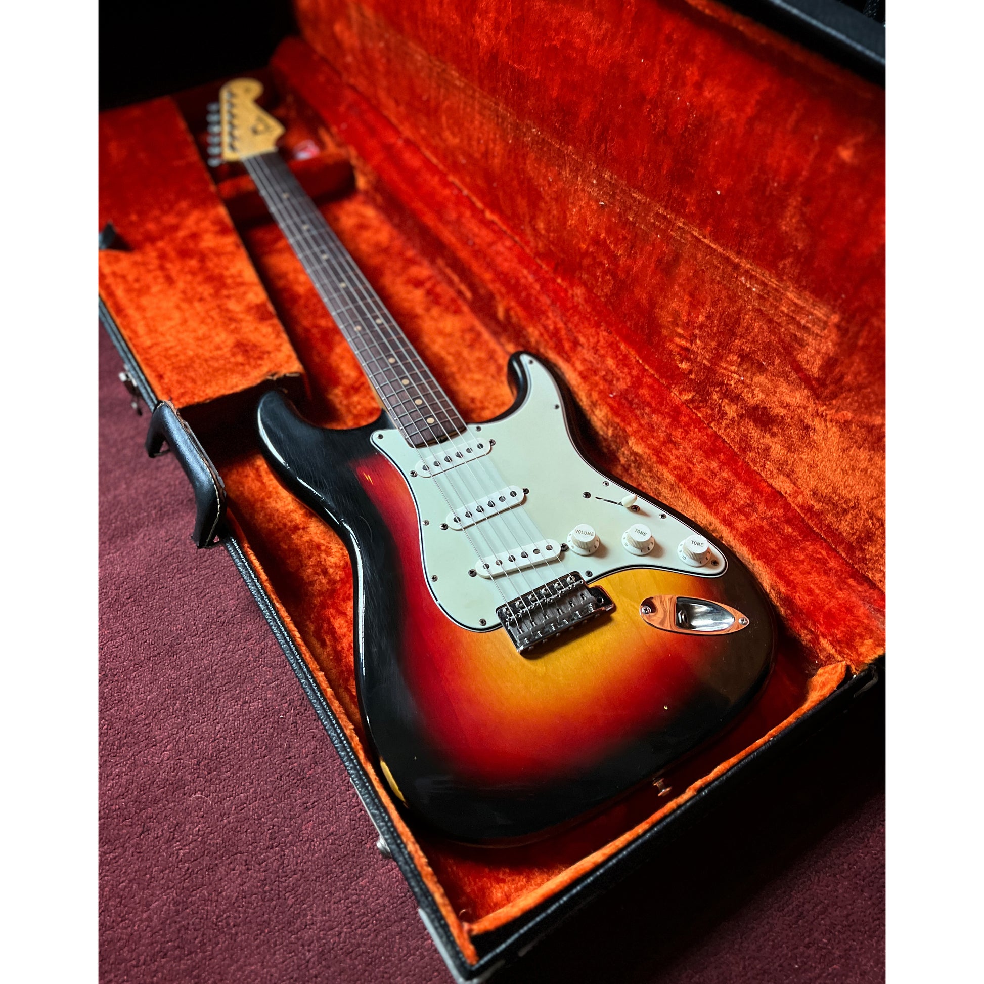 Nice "used but not abused" example, sunburst finish (area of dark overspray on bass side of body), nice neck profile, Brazilian rosewood fretboard, clay dots, appears all original, VG-EC
