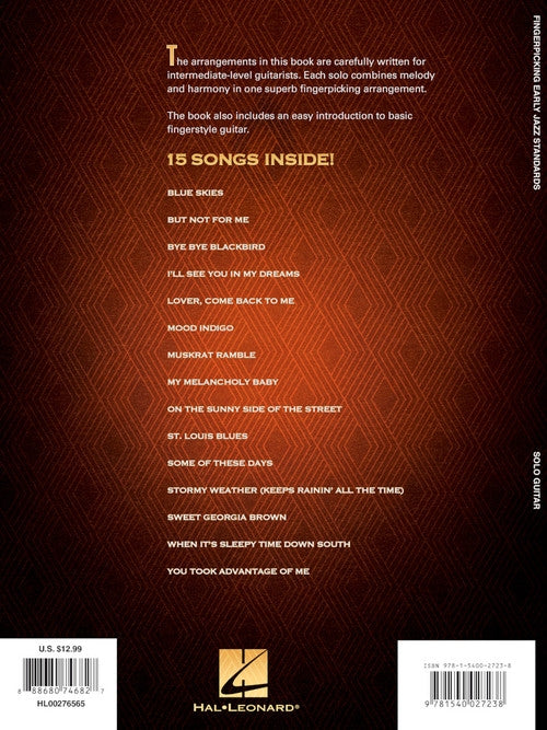 Carefully written for intermediate-level guitarists, each solo in this book combines melody and harmony in one superb fingerpicking arrangement: Blue Skies, Bye Bye Blackbird, Mood Indigo, Muskrat Ramble, My Melancholy Baby, On the Sunny Side of the Street, St. Louis Blues, Some of These Days, Stormy Weather (Keeps Rainin' All the Time), Sweet Georgia Brown, more. Includes an easy introduction to basic fingerstyle guitar. Note/tab. 35 pp.