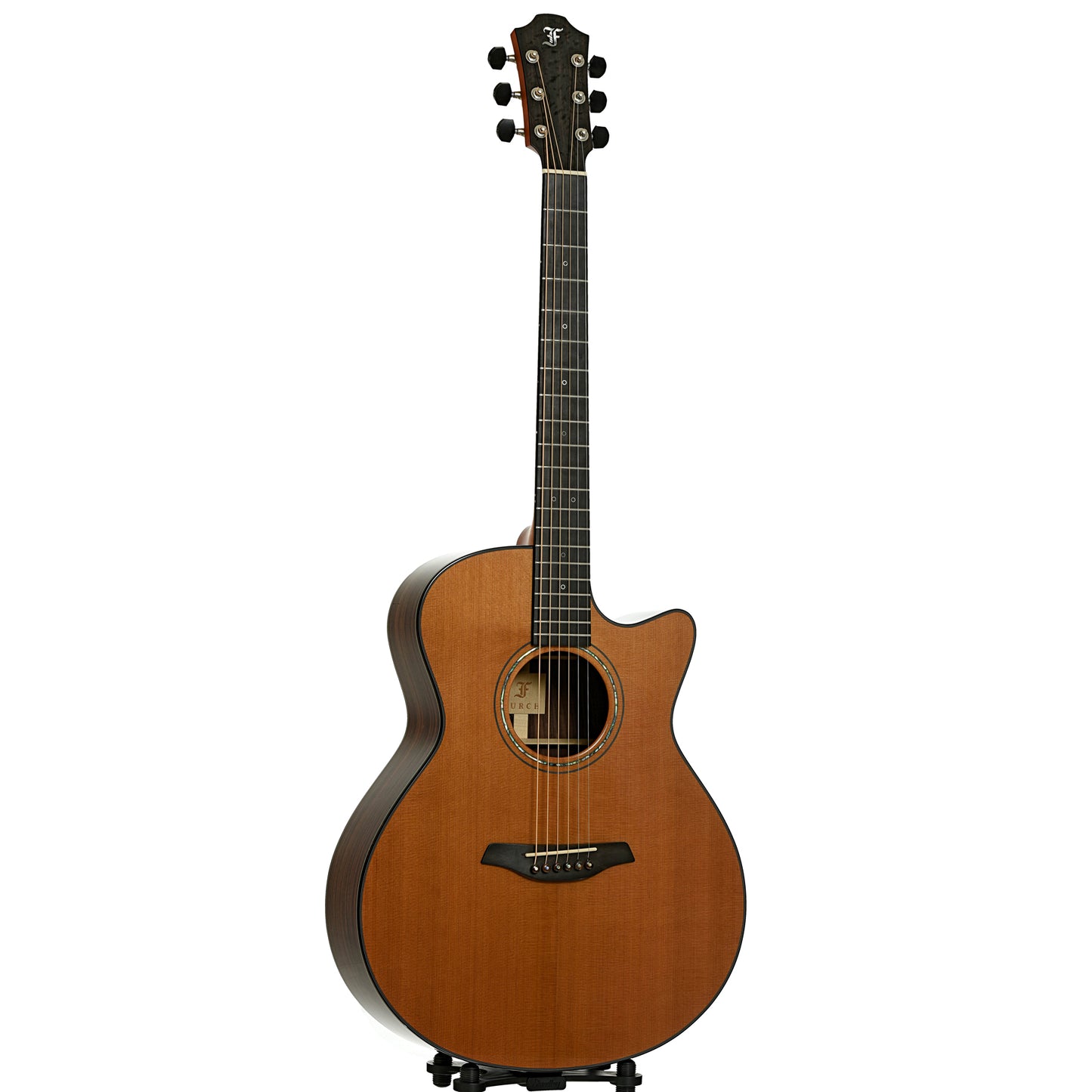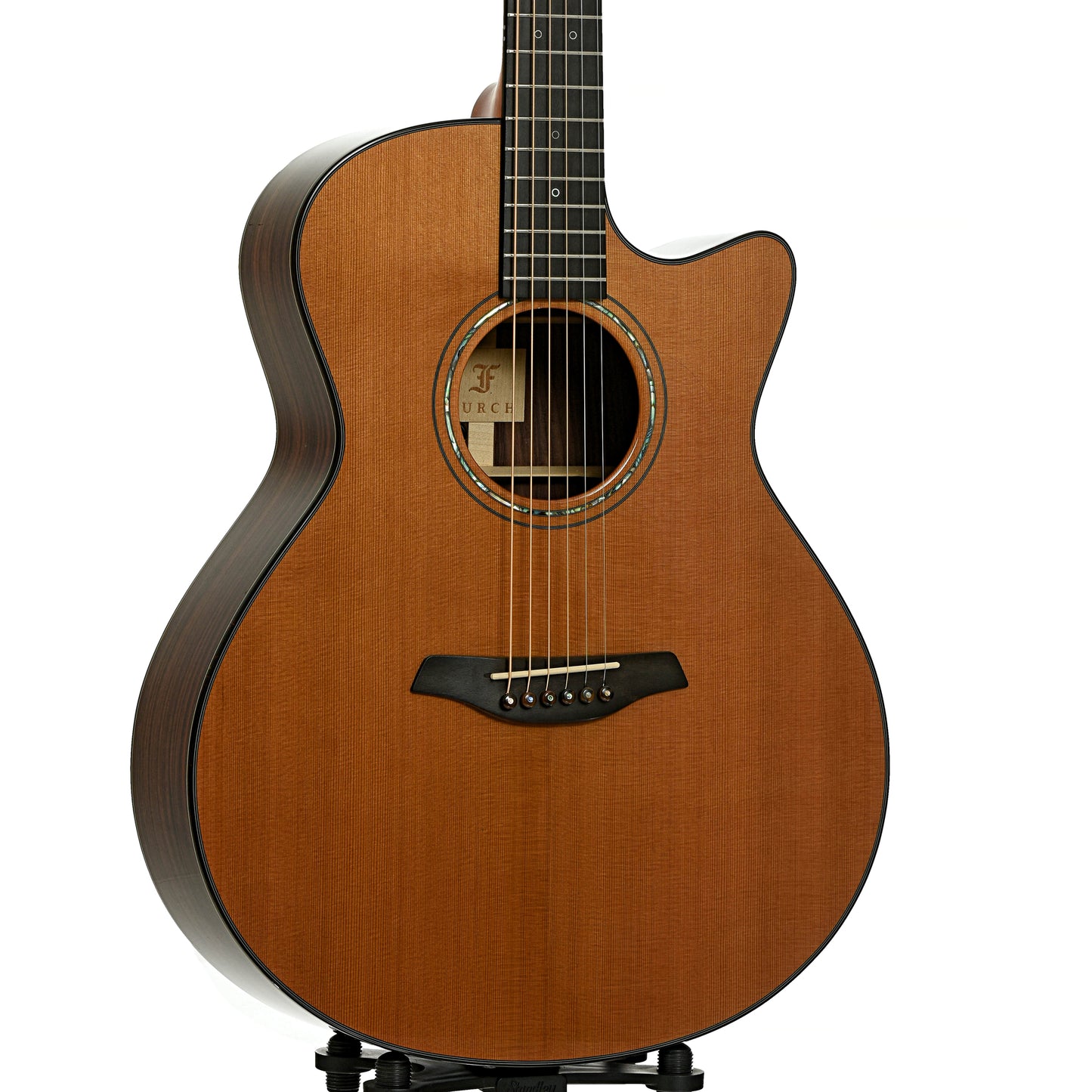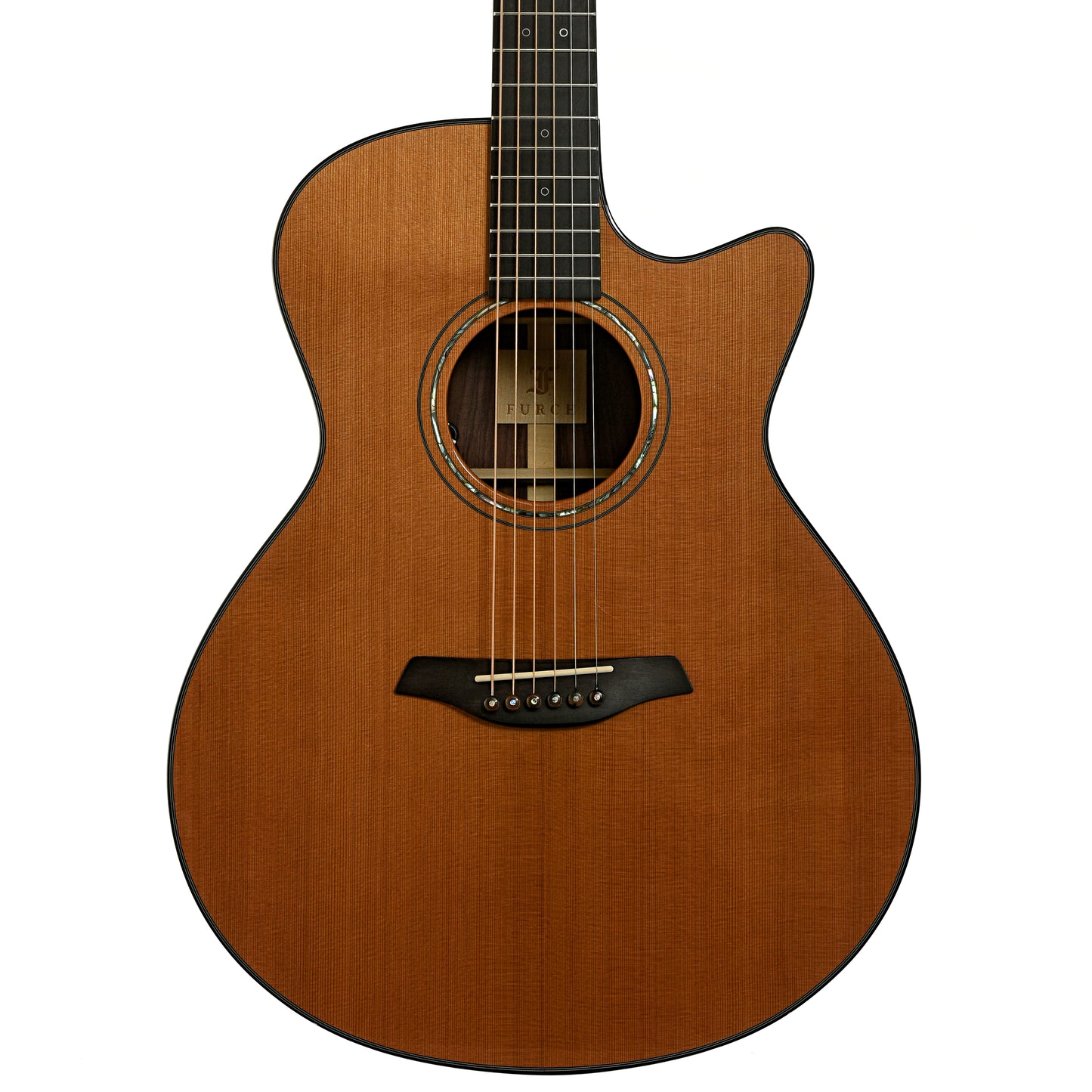 From the Czech Republic comes this top-notch Furch flat-top, with a Grand Auditorium body of Western red cedar top and rosewood back and sides, and a Venetian cutaway. It has an ebony fingerboard and bridge, and Gotoh 510 tuners. LR Baggs pickup installed. Original Hiscox molded hard shell case. On consignment.