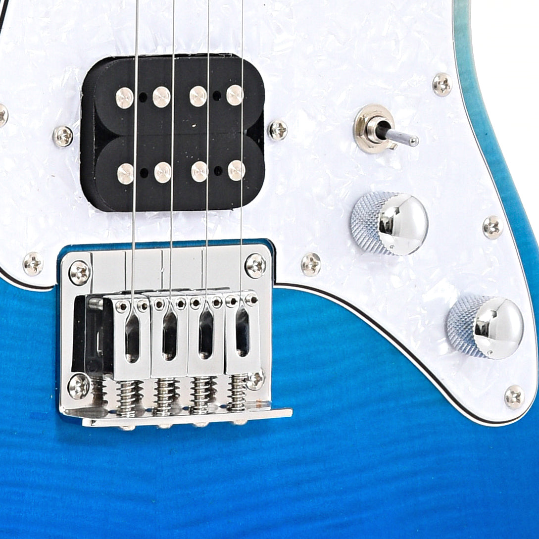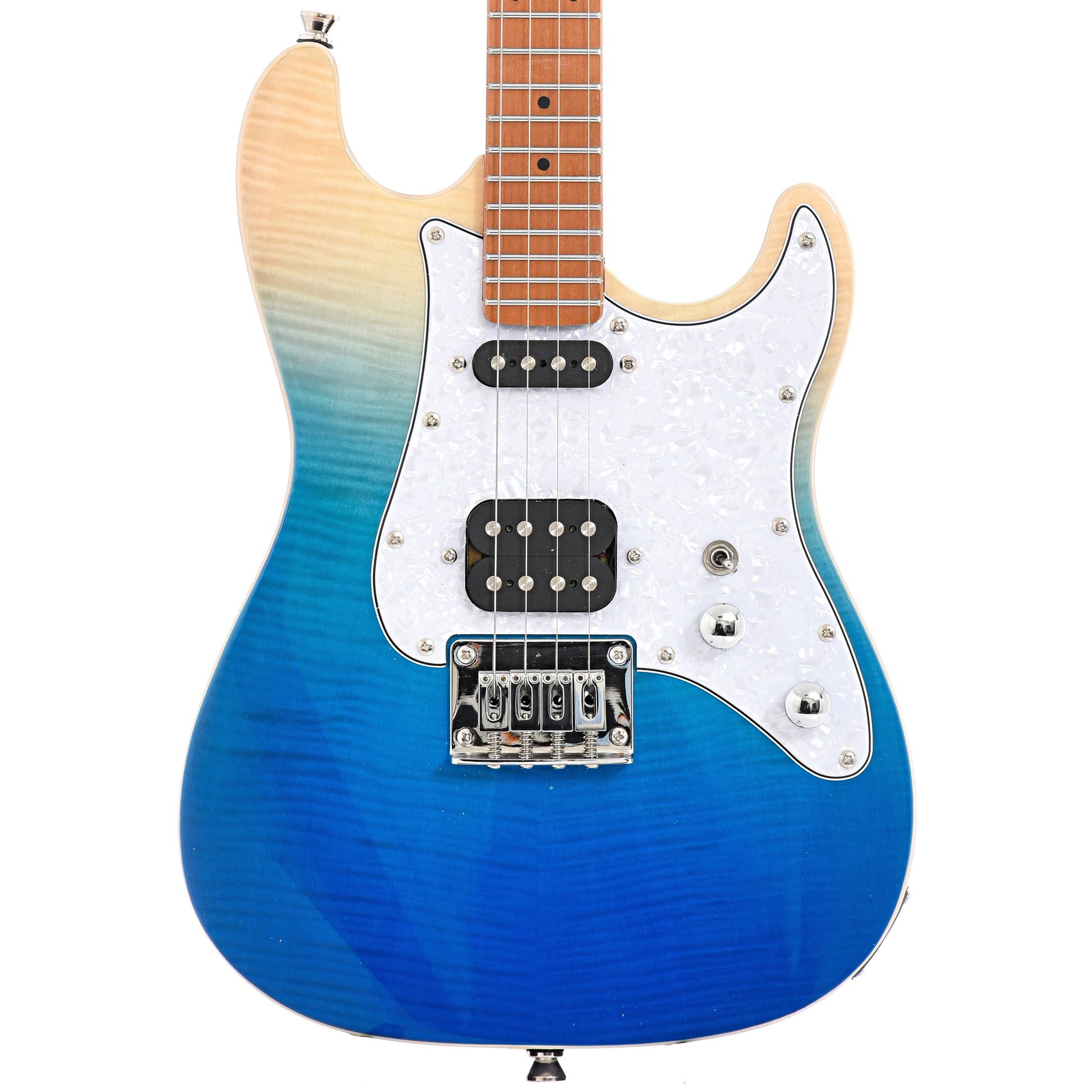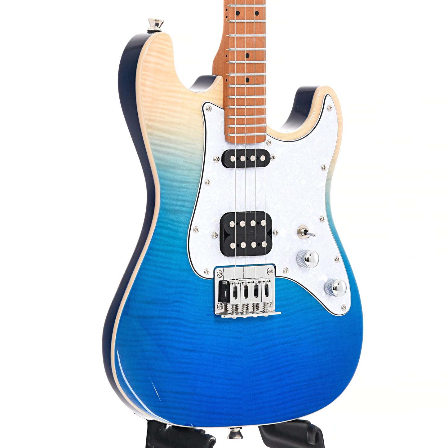 A double cutaway steel string tenor uke that is ready to rock. The Flight Pathfinder tenor uke features include a stunning gradient blue flamed maple top and a maple neck. The combination of a neck position single coil pickup and a bridge position humbucker provides a plethora of killer tones.