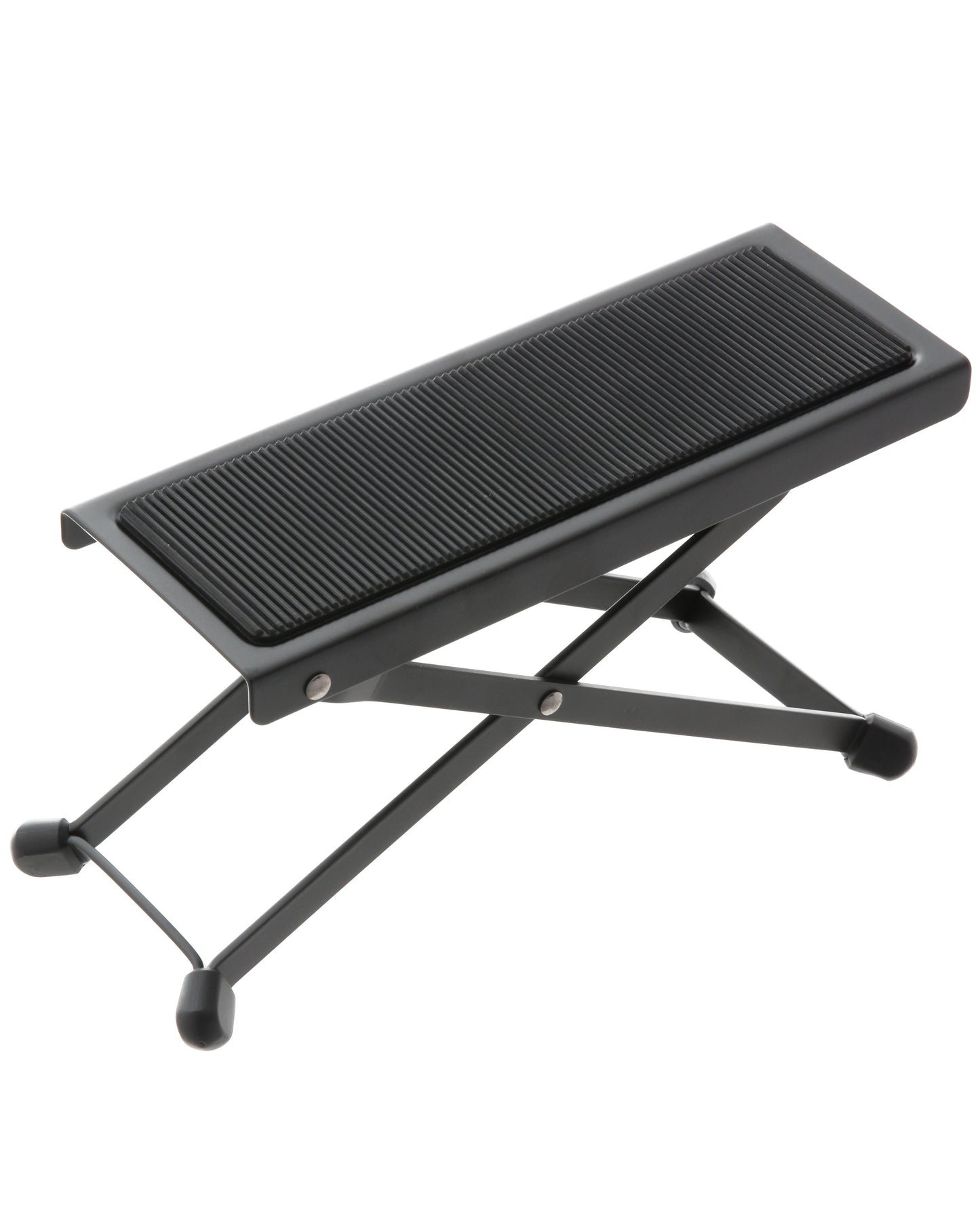 Metal with non-slip textured plastic covering the top. Adjustable height. Holds foot at an angle (depending on the adjusted height, the angle will vary). Purchased from several sources, the stool may vary slightly from the photo.