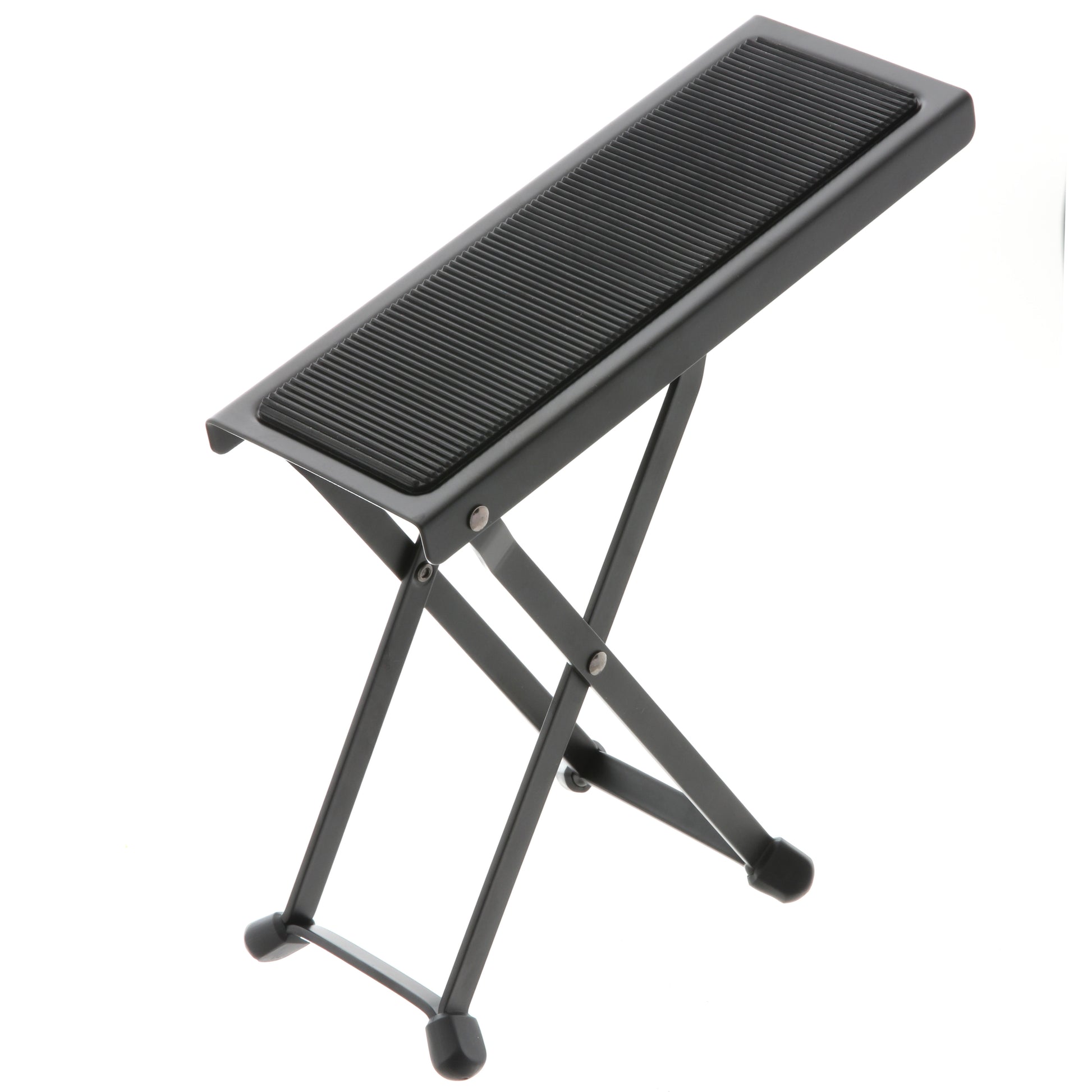 Metal with textured plastic covering top. Adjustable height. Holds foot at an angle (depending on the adjusted height the angle will vary). urchased from several sources, the stool may vary from photo.